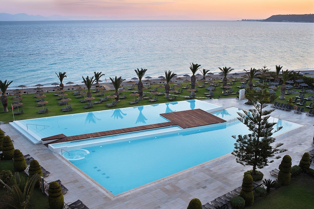 The Ixian Grand is a smart and stylish adults only paradise sitting right on the beachfront, giving spectacular views. This hotel has a very sleek feel to it with 3 inviting pools and comfy sun loungers – and there’s even an indoor relaxation pool if you want to take the R&R up a notch. The Ixian Grand offers big buffet restaurants, letting you pile up your plate at breakfast, lunch and dinner, or on an evening you can try the traditional Greek a la carte menu and treat your tastebuds to something extraordinary. With a pool bar and lobby bar, you’ll never be far from a refreshing drink – you can keep the cocktails flowing all day!
