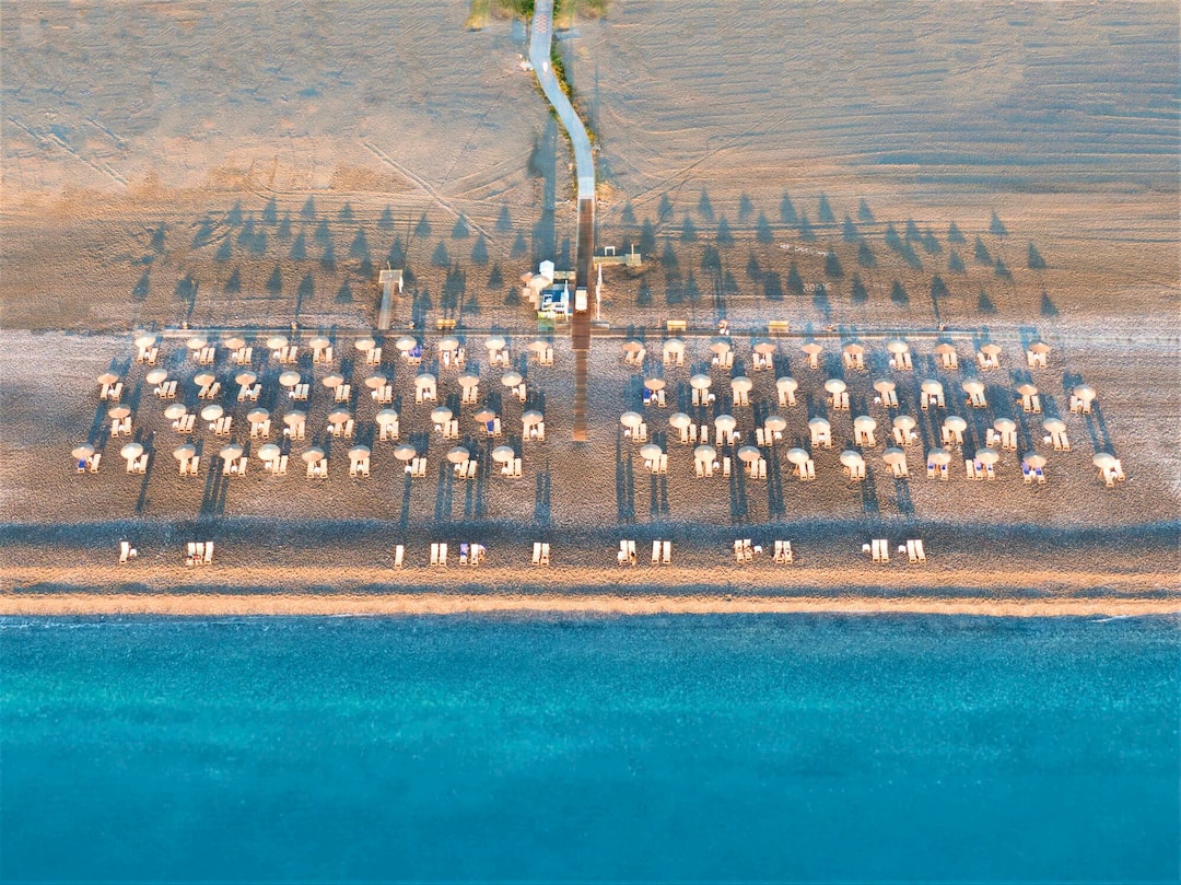Down on the front, there’s a four-kilometre-long beach. It’s made of tiny pebbles and is incredibly popular with the locals. As well as offering plenty of space to relax, the beach also has a small bar that serves drinks.