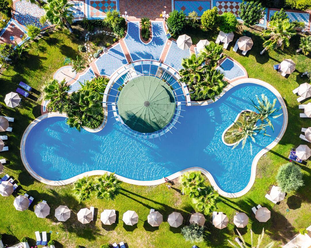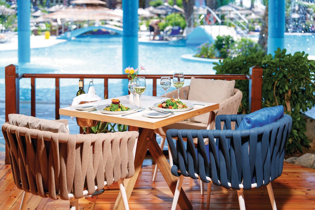 During a stay here, you’ll have a choice of six outdoor swimming pools and an indoor option. Sunloungers and parasols frame the scene on the sun terrace, which is perfectly positioned to catch some rays.