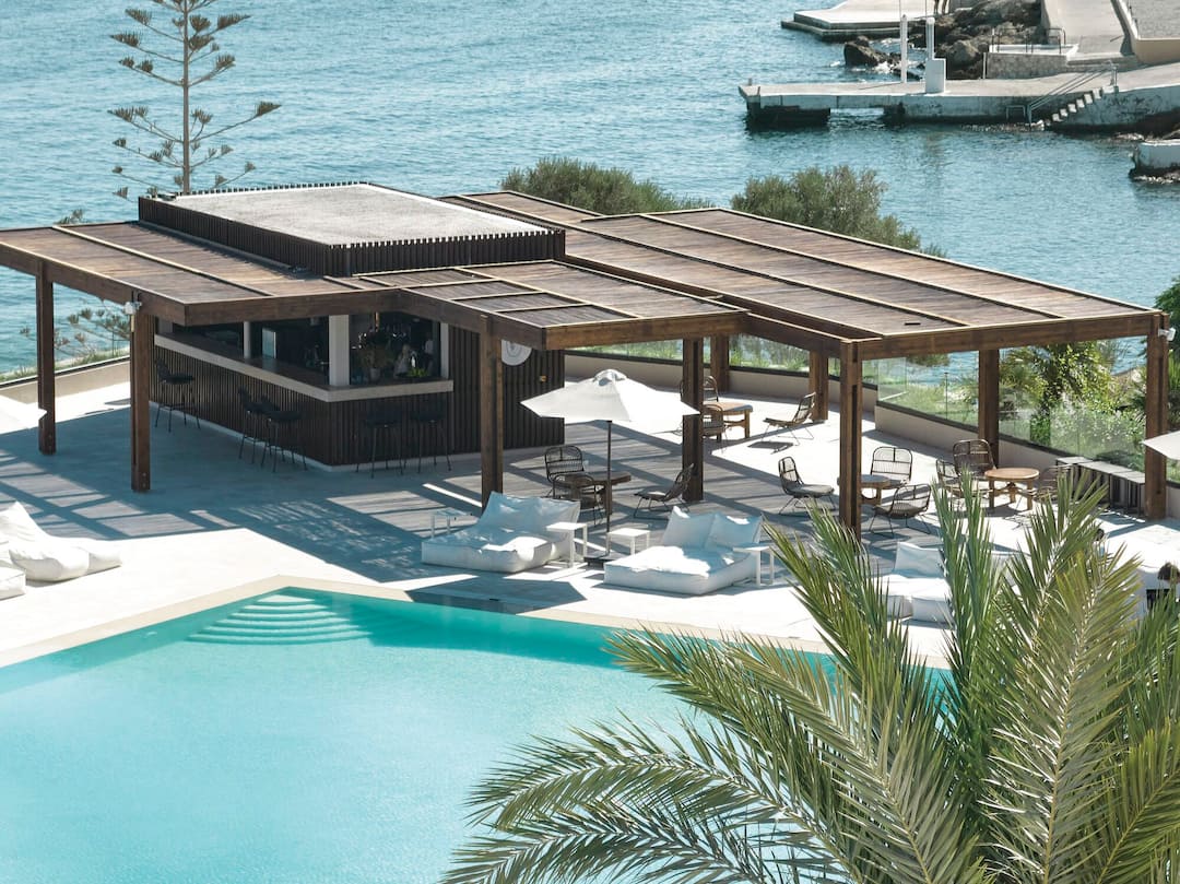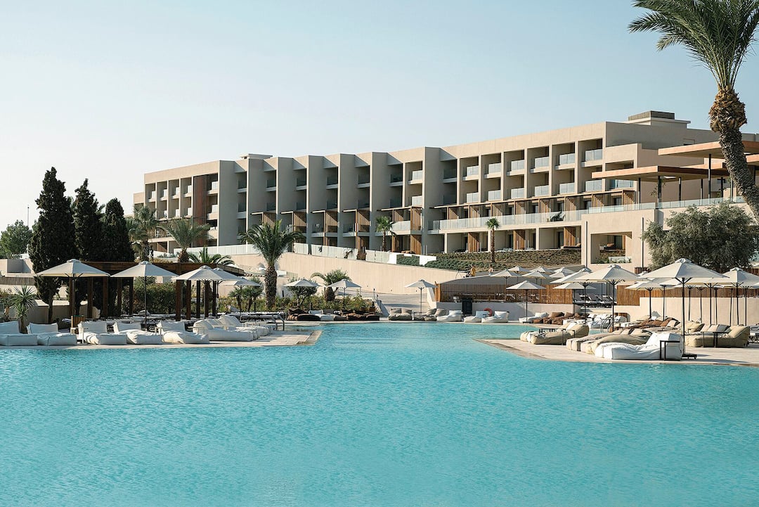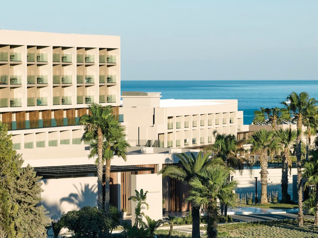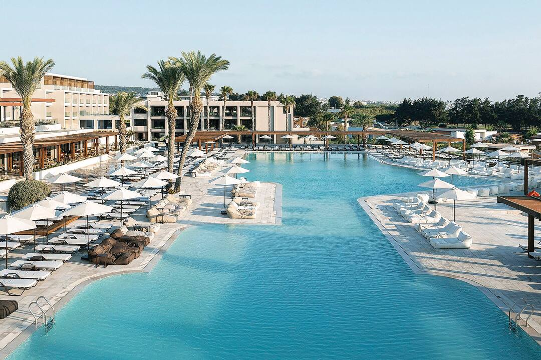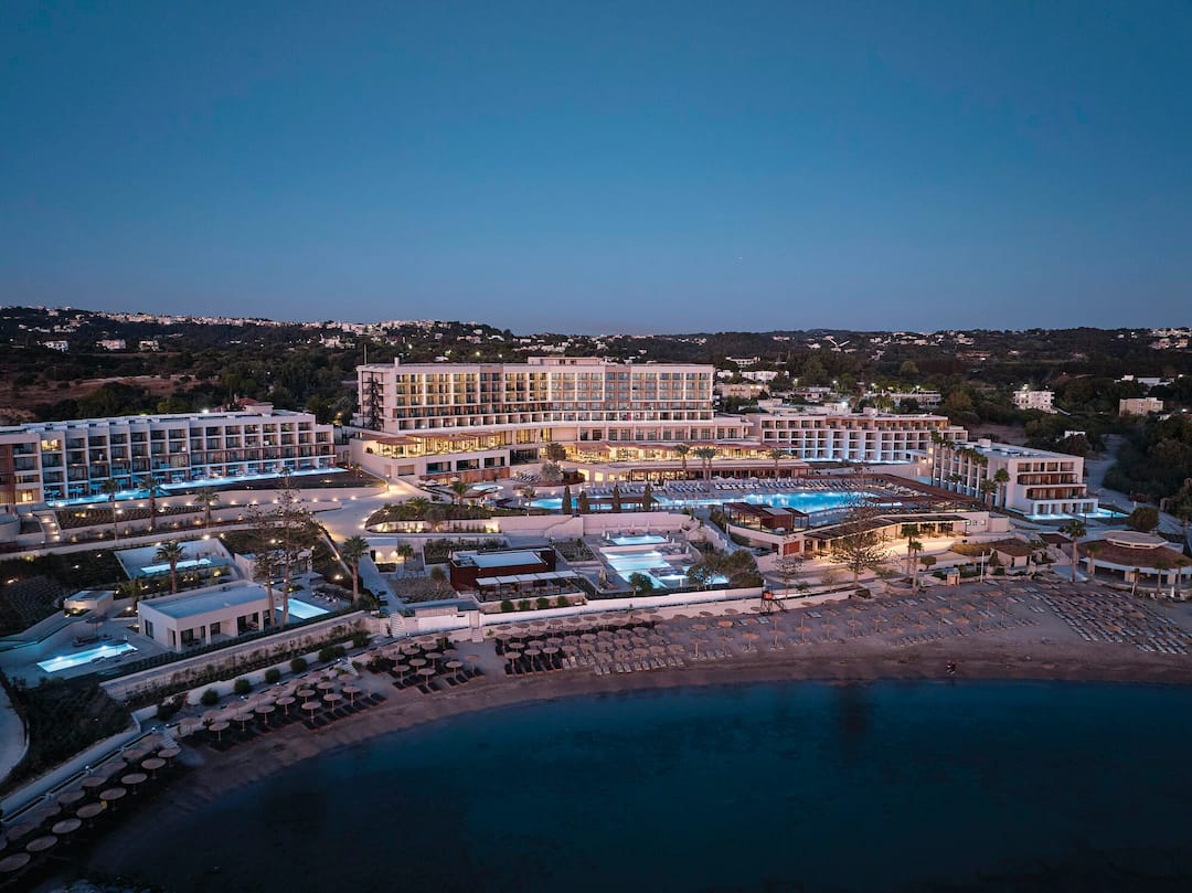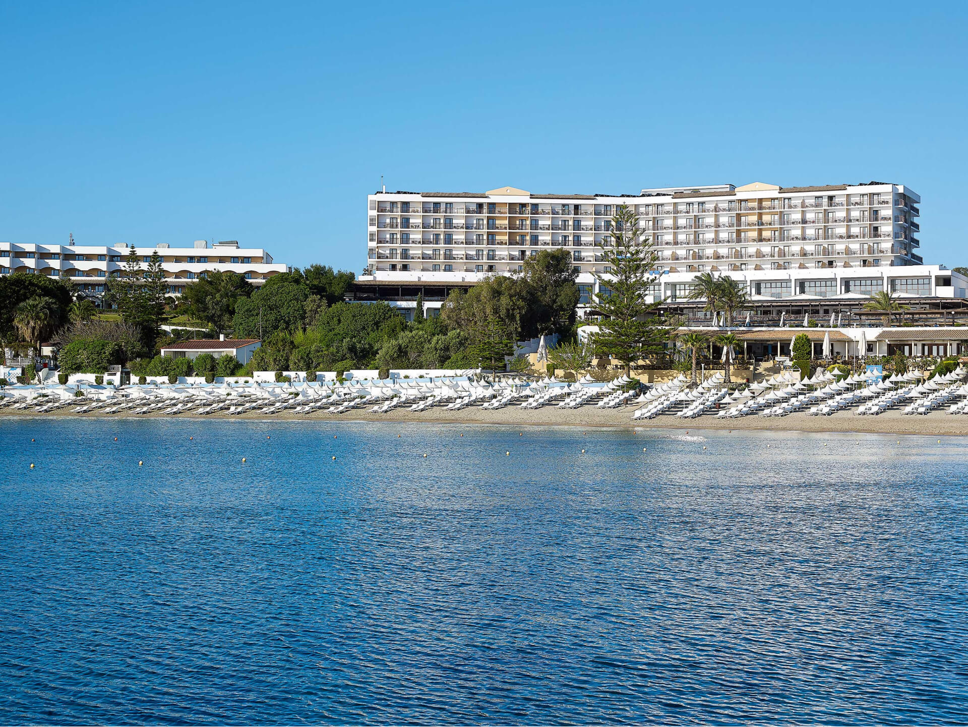 White-washed and looking beautiful, the Amilia Mare Beach Resort is a striking hotel with a private beach and a selection of lovely pools – one of which is a lagoon with a stunning sea view. There’s even a heated pool indoors if you fancy it. There are floodlit tennis courts, spa treatments, mini golf and football, and the beach is right there when you want it. The property has three bars, with one by the pool, and a bumper four restaurants serving a variety of cuisine. It’s just two minutes on foot from Kalithea and a short drive from Rhodes Town.