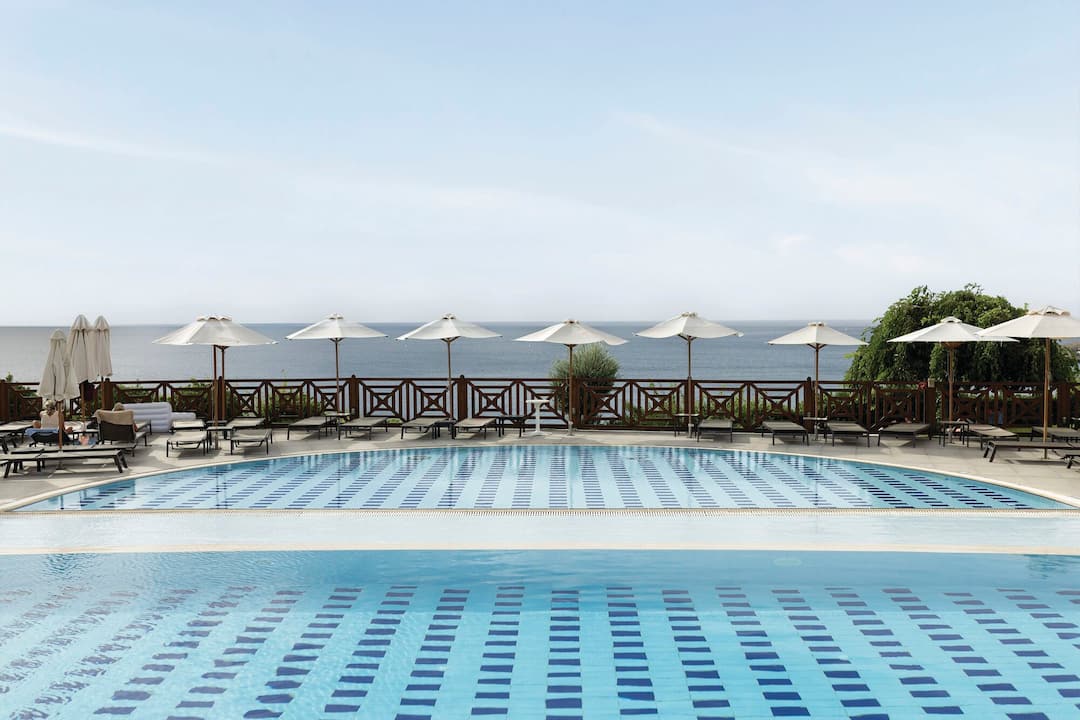 With a beautiful hilltop setting, the Kalithea Horizon Royal provides stunning views over the bay. Its location also makes it the perfect location to enjoy everything Rhodes has to offer visitors. There are six outdoor pools at the hotel. One area has a trio of tiered pools that starts with a small, round infinity pool and works down to an extra children’s pool with a sprinkler. At the end, there’s a covered snack bar, perfect for when you’re feeling peckish after a gentle swim. If you’re looking for relaxation, then there’s also a sea-facing hot tub, which stays open until 8pm. The Kalithea Horizon Royal’s buffet restaurant offers a mix of continental and cooked breakfasts while, in the evening, you’ll discover various themed nights as well as a range of Greek and international dishes.