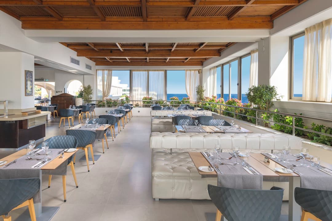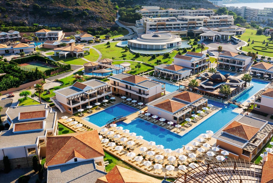 Spanning an impressive 12,000 square metres, La Marquise is one of the largest and most exciting hotels in Rhodes. If you manage to prise yourself away from the comfort of your room, the collection of eight restaurants and bars serve up the best buffet-style fresh, local ingredients and refreshing drinks throughout the day. The hotel boasts seven freshwater public swimming pools, two of which are exclusively for adult use only. However, the Blue Flag coastline of Kallithea Beach is also an enticing option – especially when the beach towels, sunbeds and umbrellas are complimentary!