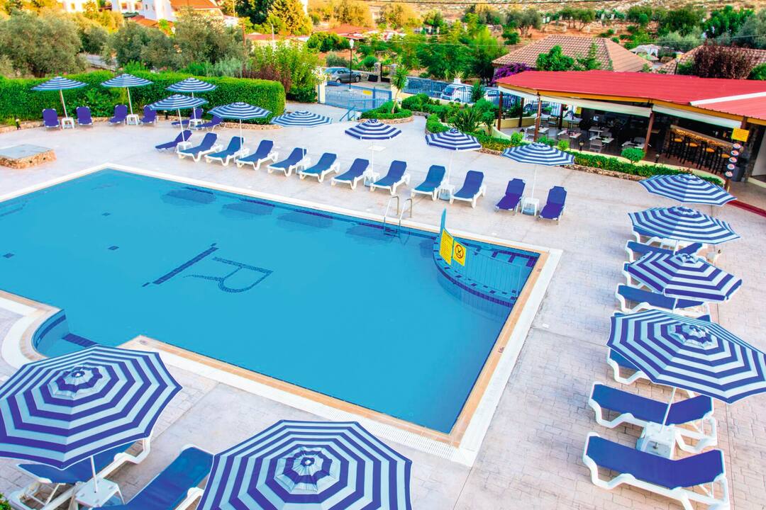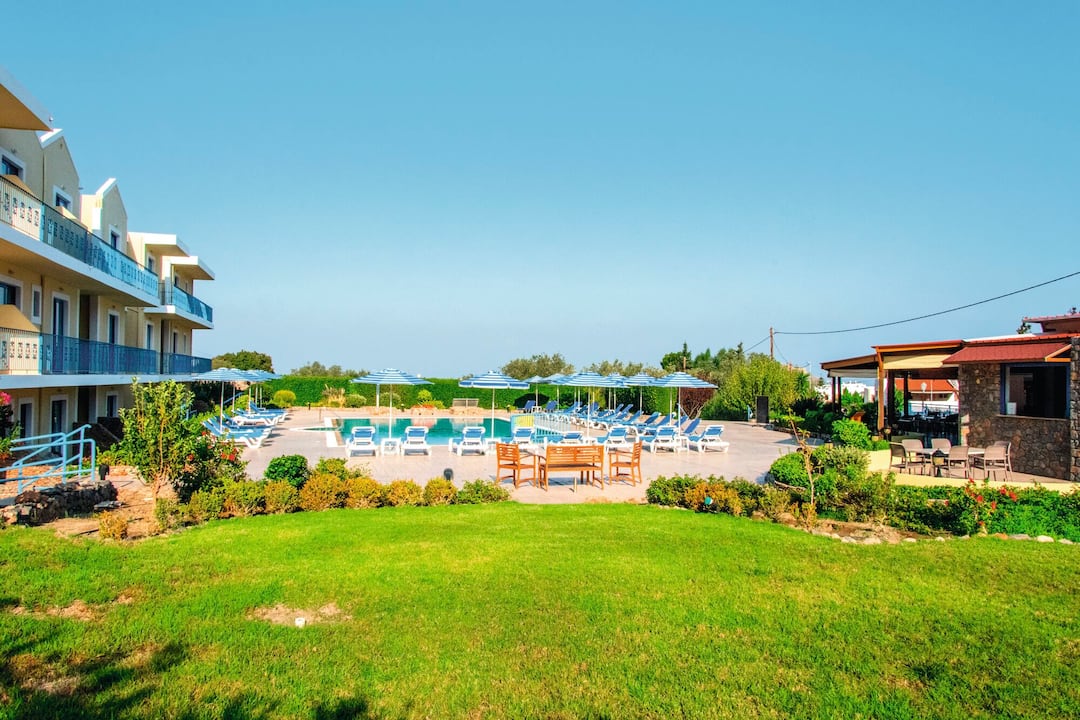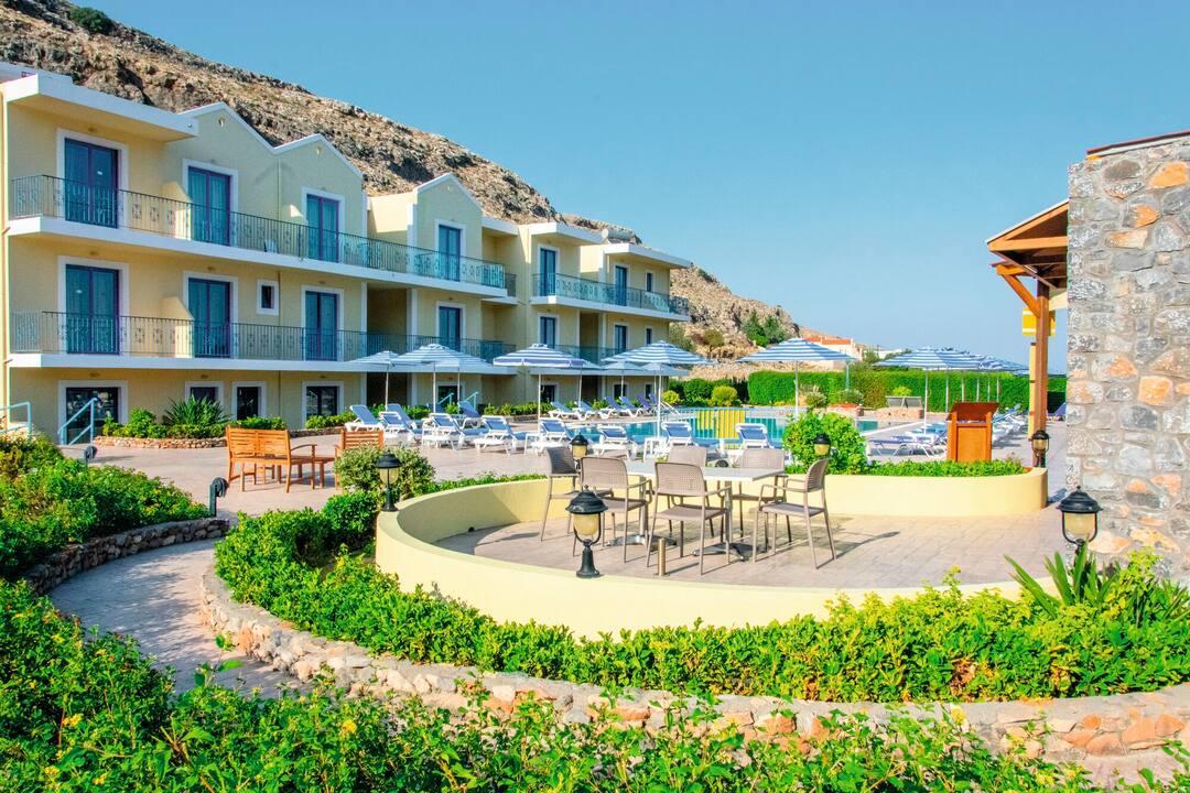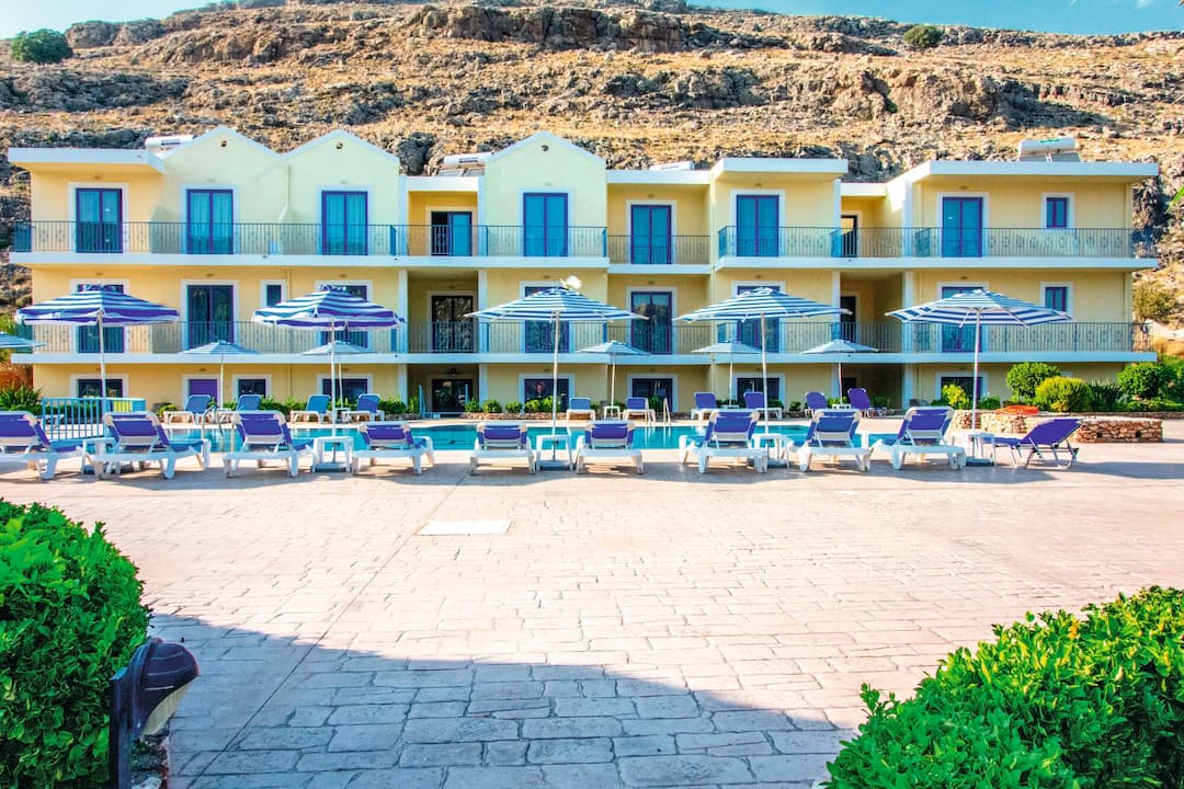 This hotel has a backdrop of mountains and craggy greenery, which helps to provide an authentic Greek feel. This is helped further by the simple bedrooms that come with stark-white walls and mahogany furniture. A balcony or terrace allows you to make the most of the scenery.