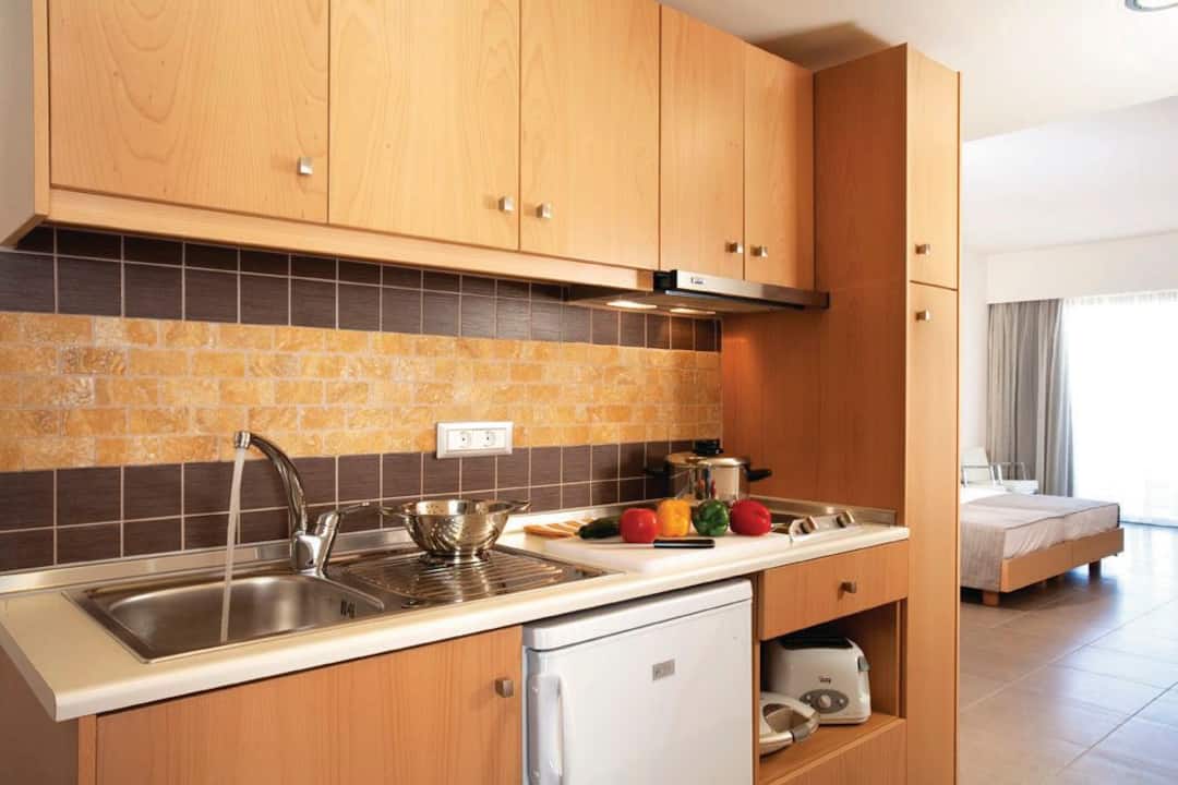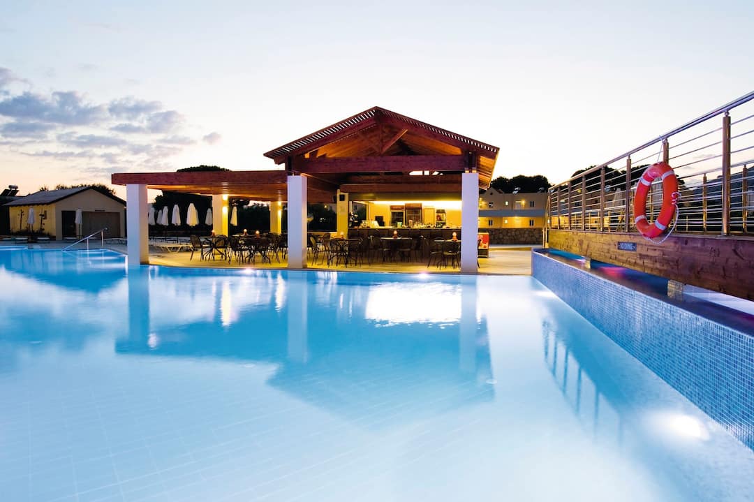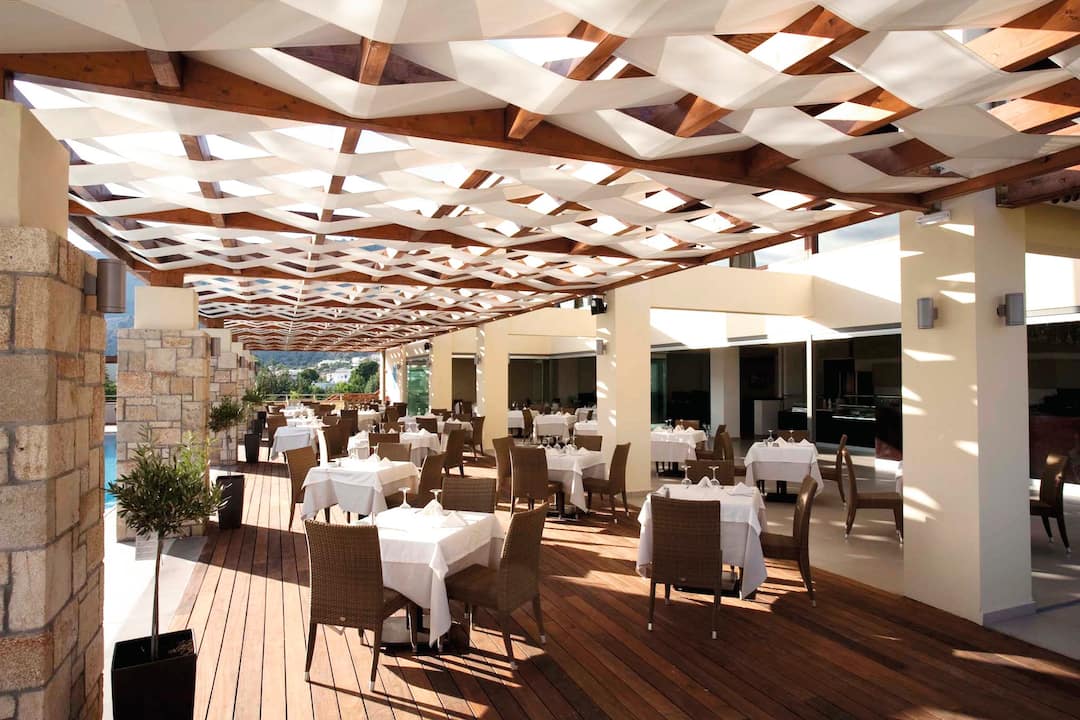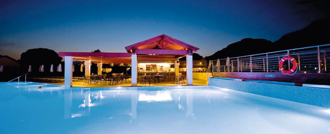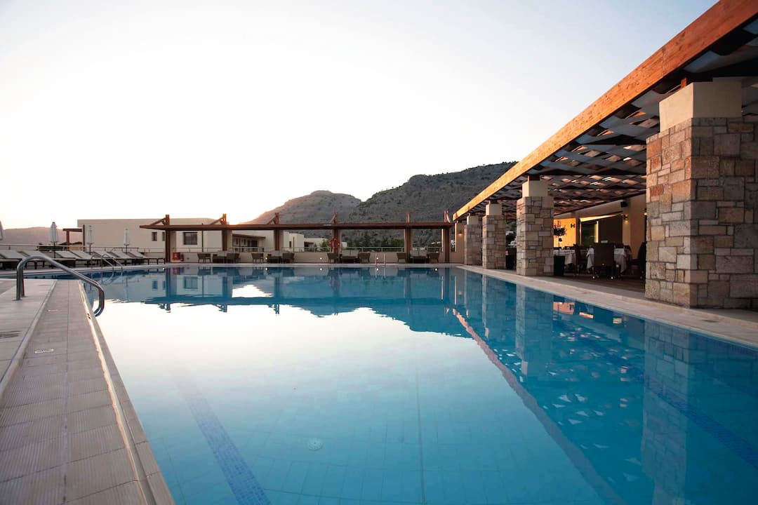 The main restaurant serves buffet breakfasts and, in the evenings, has a la carte service with international favourites and Greek classics on the menu. There’s also a poolside lounge bar and restaurant that lights up at night. During the day, it serves light lunches.