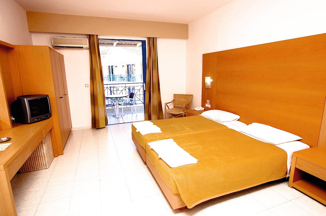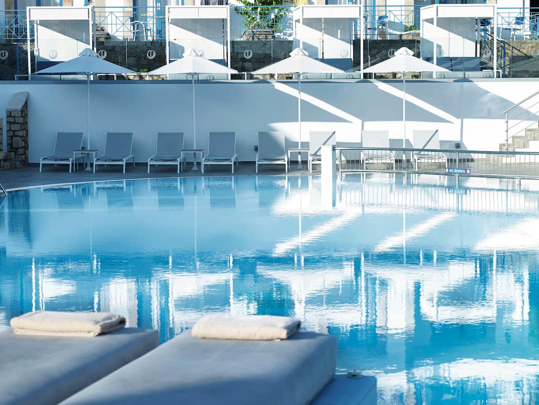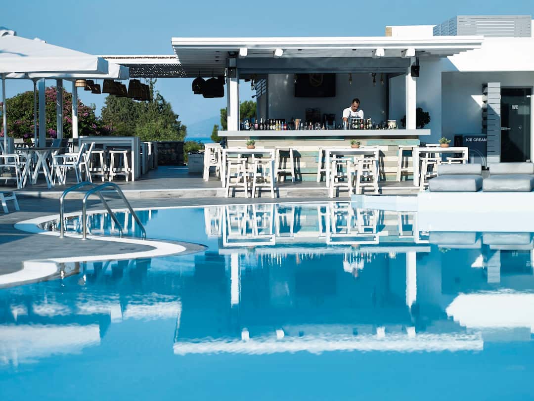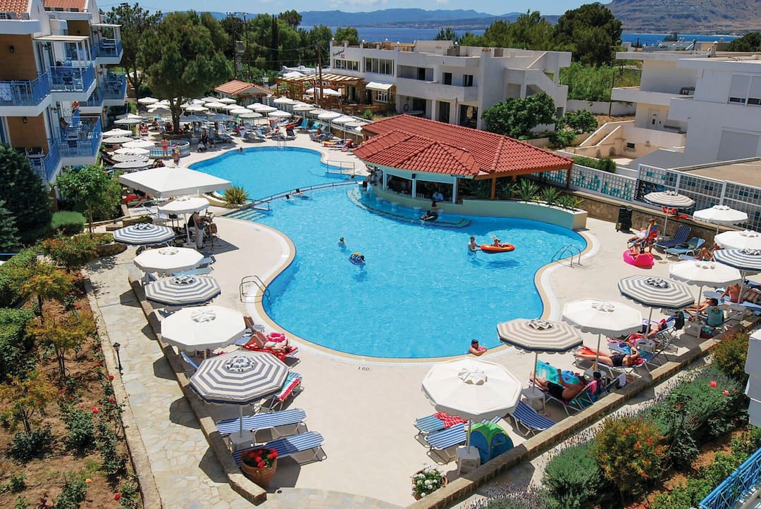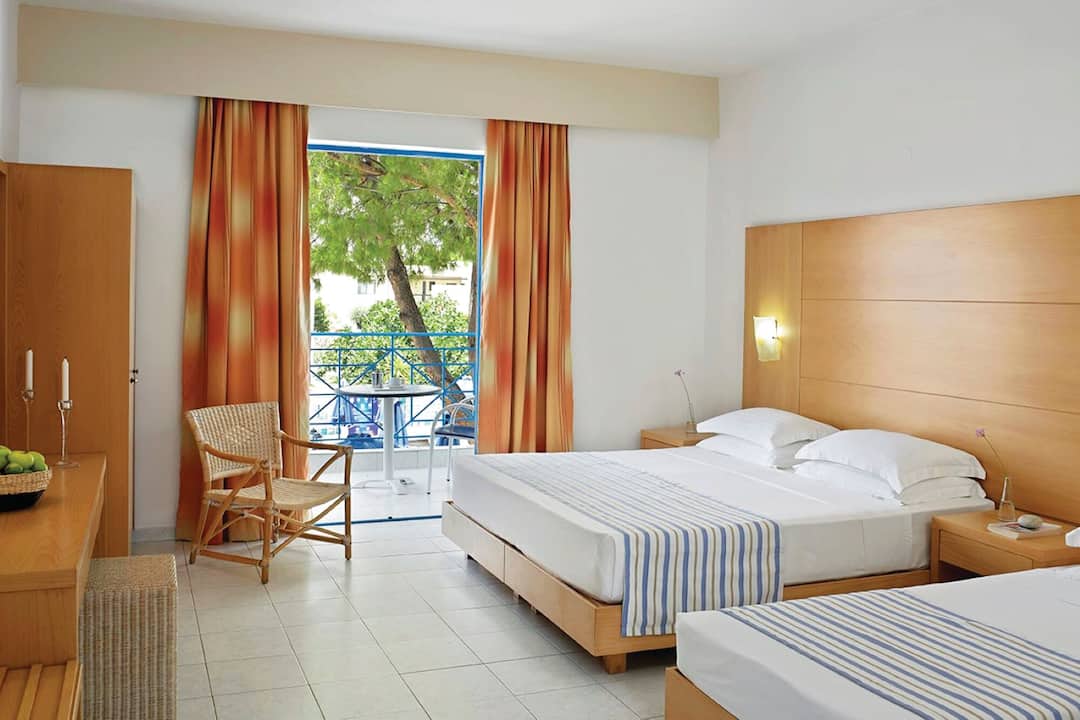 Pefki Islands Resort is a relaxed hotel that’s right next to a sandy beach. It has a good-sized pool with a sun terrace surrounding it, as well as a second pool that’s slightly quieter. Both pools have separate children’s sections – and one pool has its own swim-up bar! The resort has an on-site restaurant that overlooks the pool and serves up huge portions for every meal. You can choose between different cuisines, though the local dishes are best. Steps from the hotel lead straight down onto Pefkos’ sandy beach, while the town centre is a short five-minute walk away. There’s also a nearby bus stop that takes you into Lindos and Rhodes Town. Guests here can also use the facilities at the sister hotel of the Island Blue.