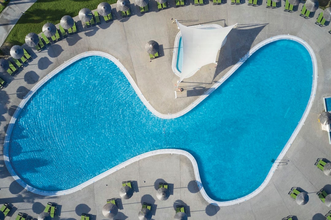 There’s a hat-trick of pools. Two are set up for sports and activities to keep the whole family entertained, while a third specialises in relaxing vibes. Little guests also have their own trio of pools.