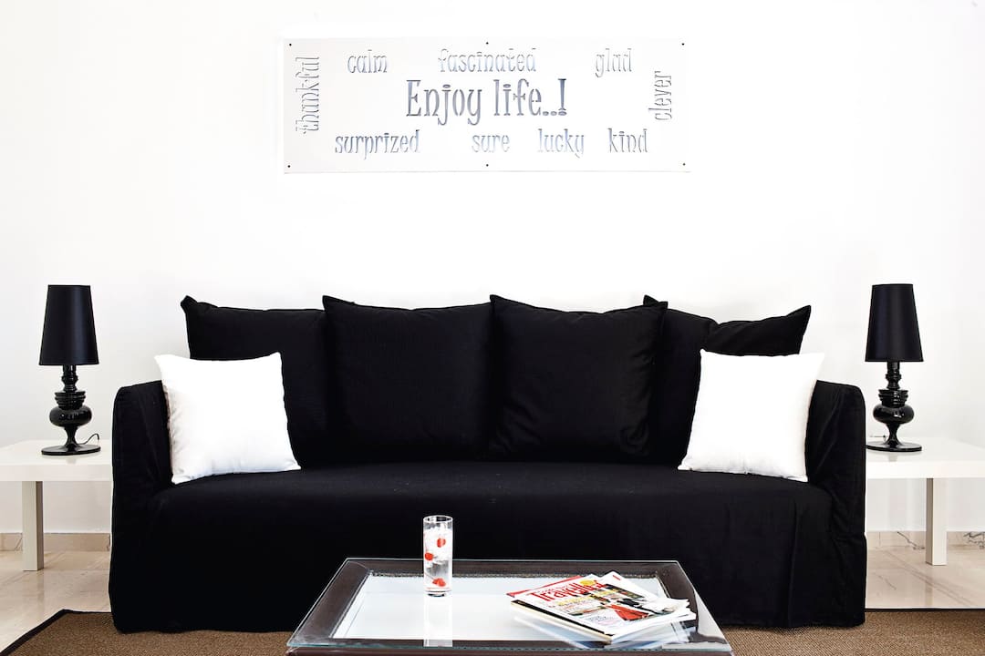 The Acqua Vatos is in the heart of Kamari, so you’re only a minute’s walk away from a striking black-sand beach. This is a spot where you can work on your tan, try the water sports or take a water taxi to Perissa.
