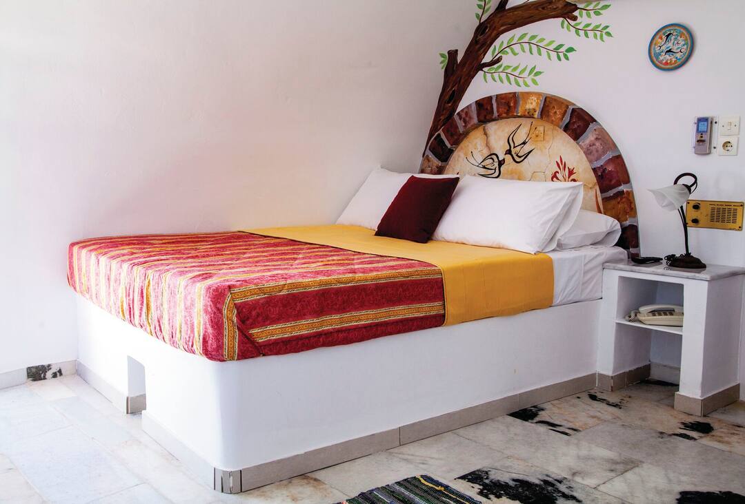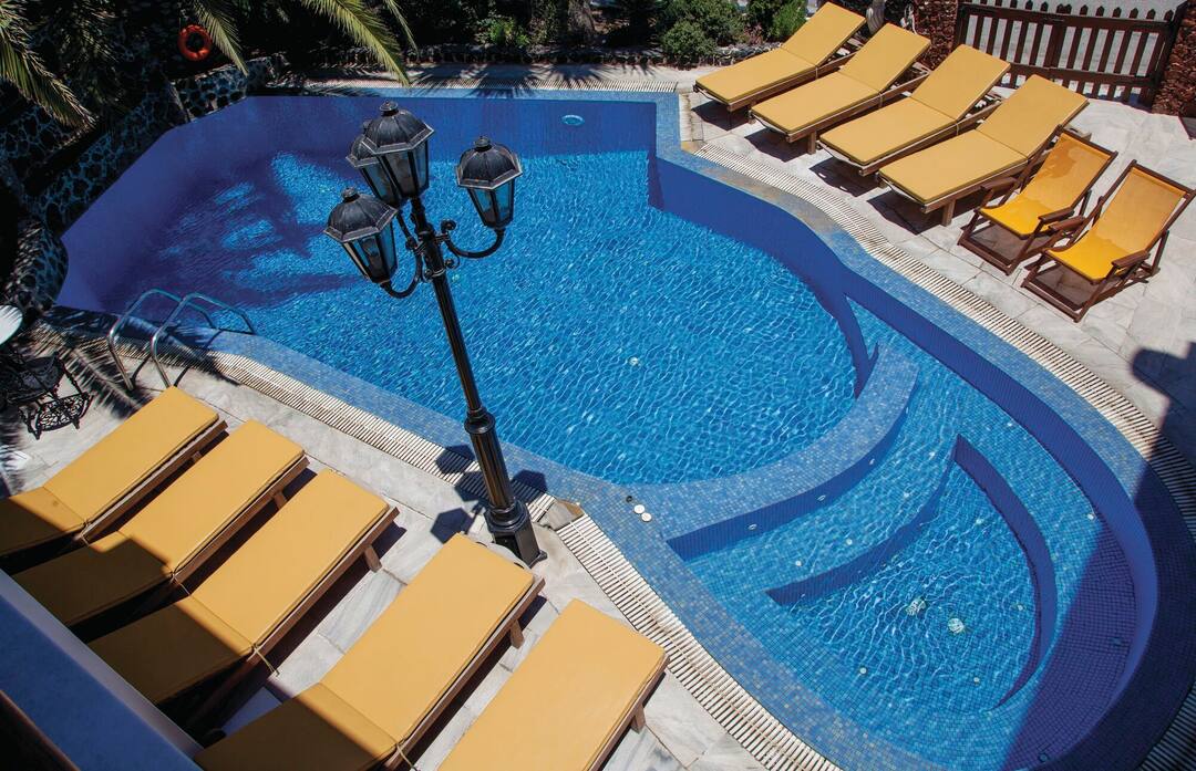 Inside, rooms are unfussy and bright. But, you’ll want to spend most of your holiday by the pool. It comes with hammocks and loungers where you can soak up the sunshine. It has a hot tub at one end and a waterfall tumbling down at the other.