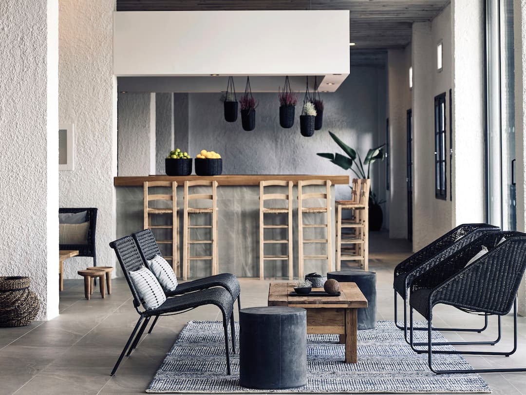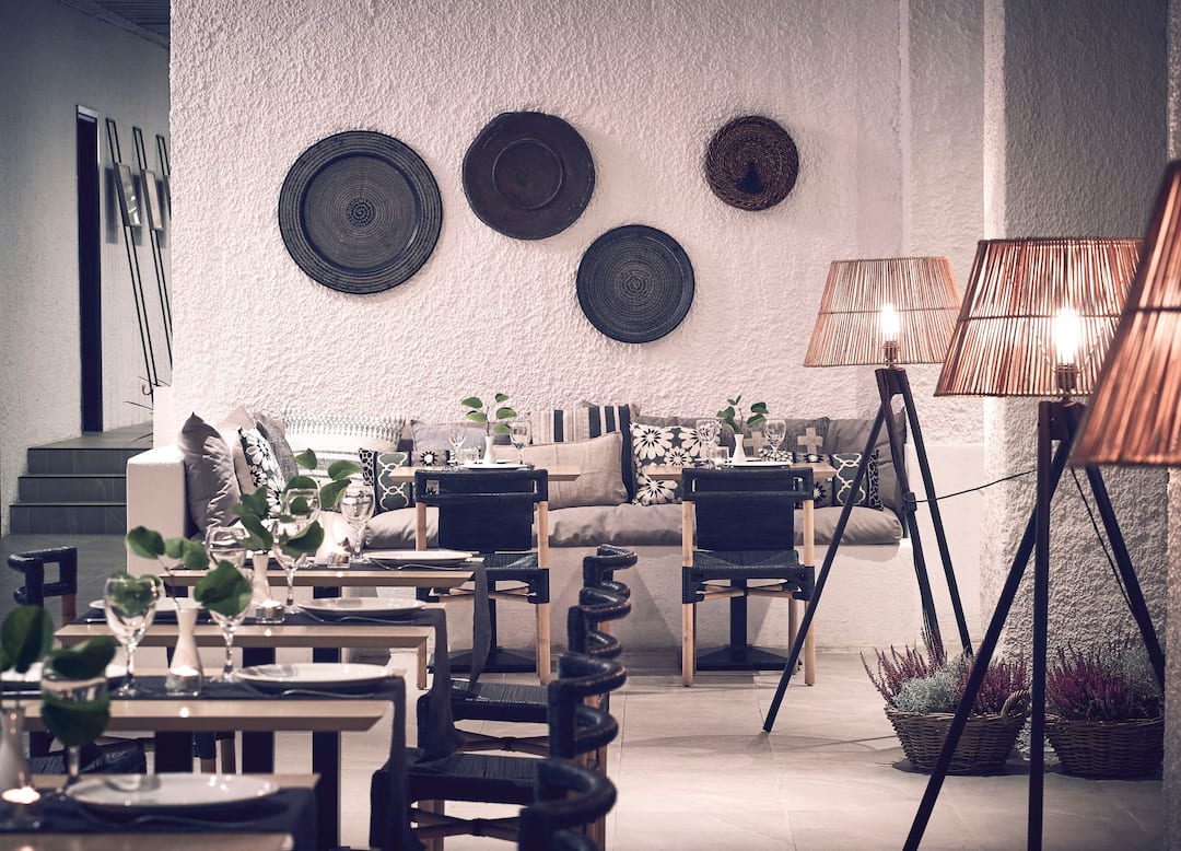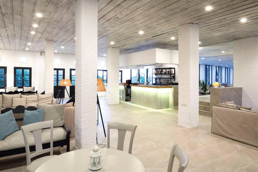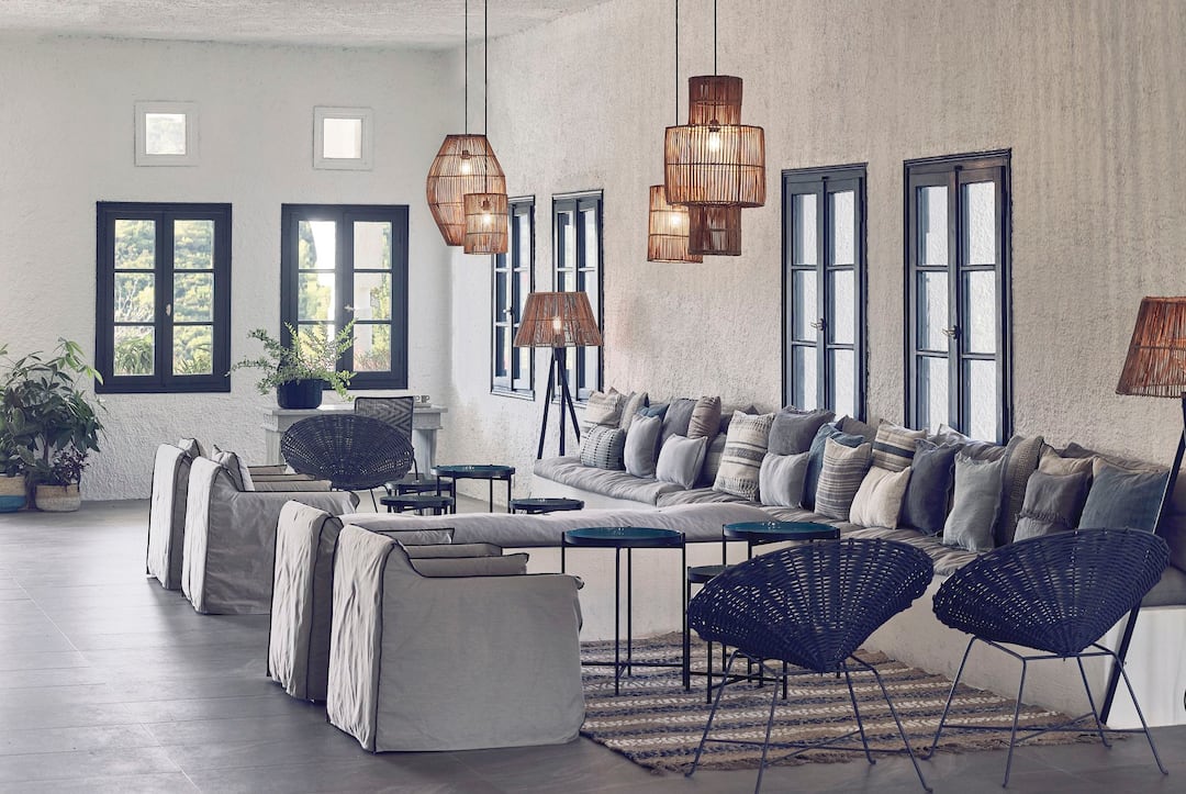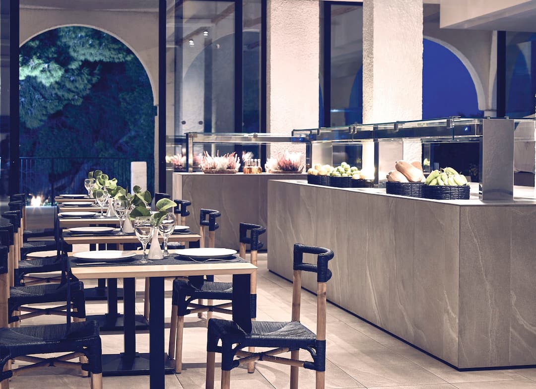 The main buffet restaurant sets you up for dining, but there’s also a beach taverna that serves traditional Greek food. Evenings here are spent sipping cocktails on the al fresco terrace, where live music also takes place from time to time.