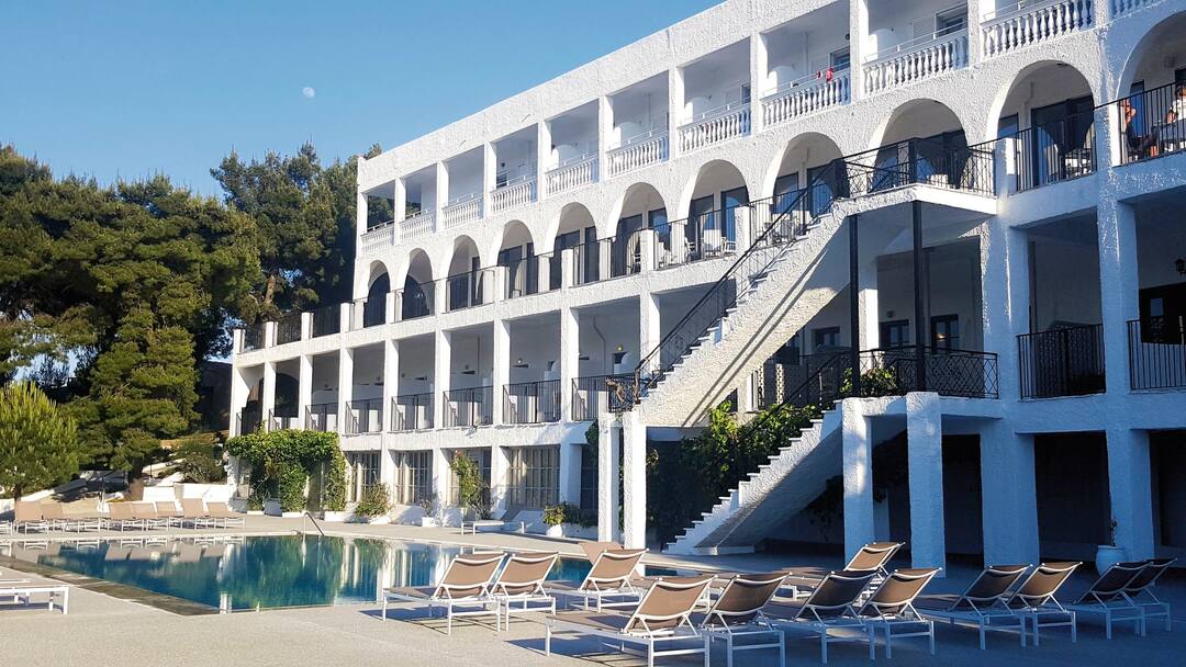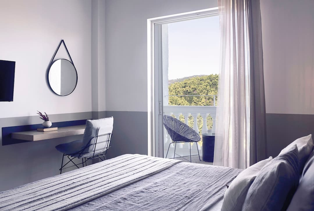 At the Skiathos Blu, traditional good looks and stunning sea views go hand in hand. The hotel is surrounded by pine trees and flowers, and from its hilltop position provides picture-perfect views over the bay.