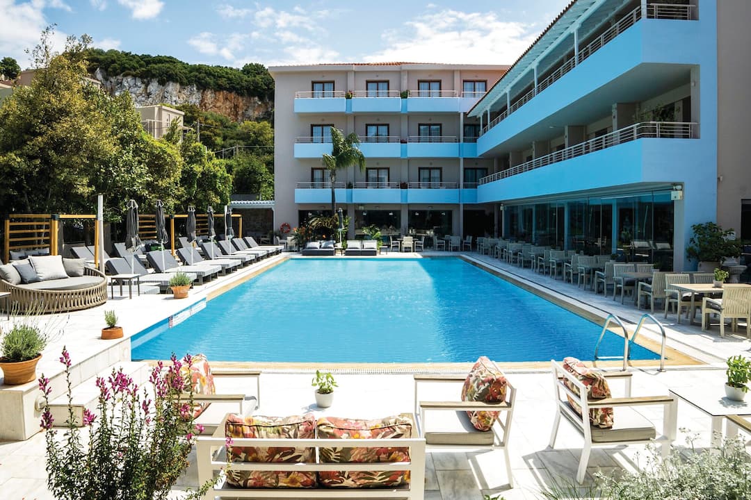 Near the hotel, you’ll uncover traditional tavernas, some of the best restaurants in Greece and sensational blue seas.