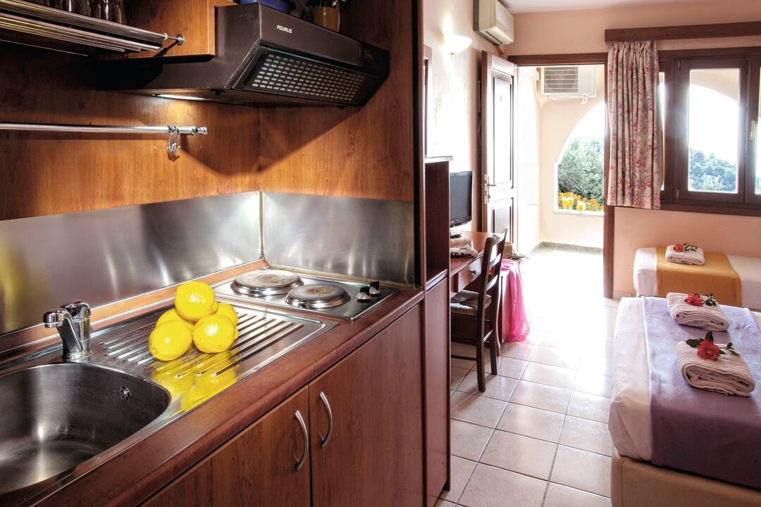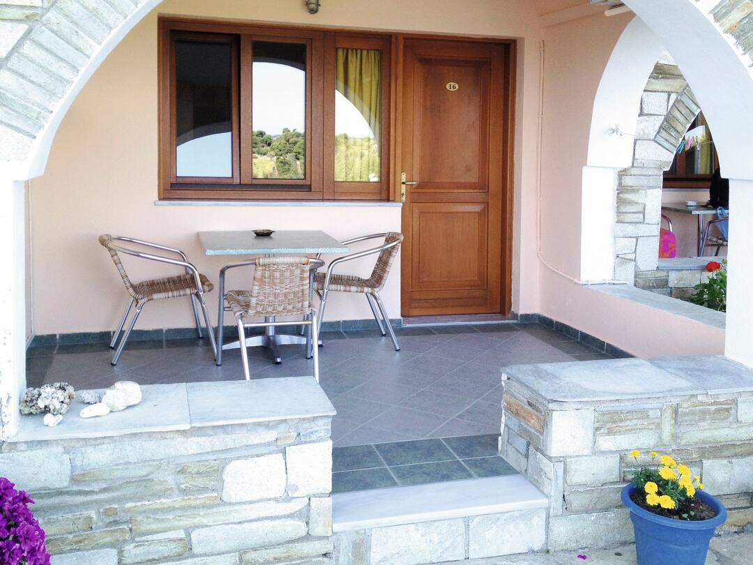 The La Luna Studios and Apartments is tucked into a wooded hill directly above Troulos Beach, so it’s only a short walk down to the sand.