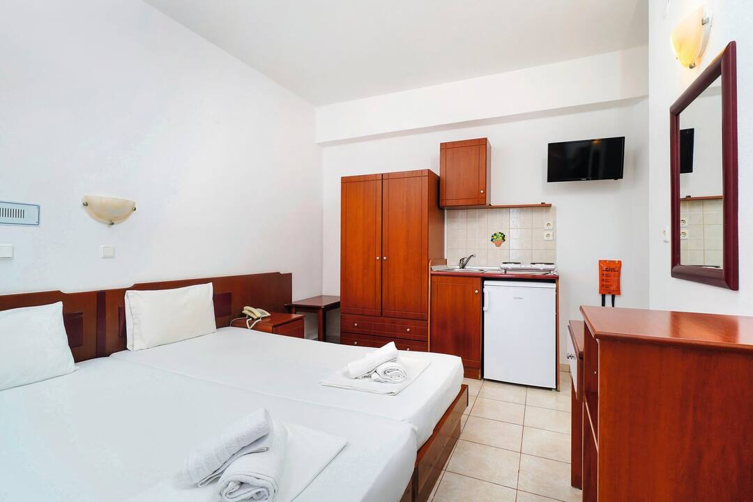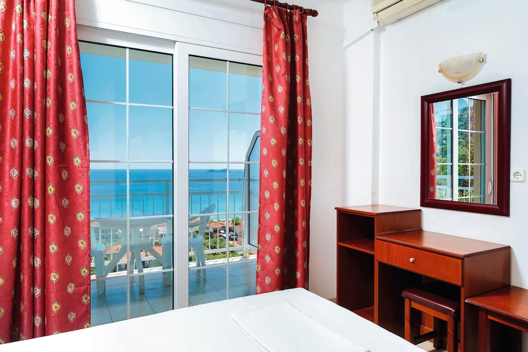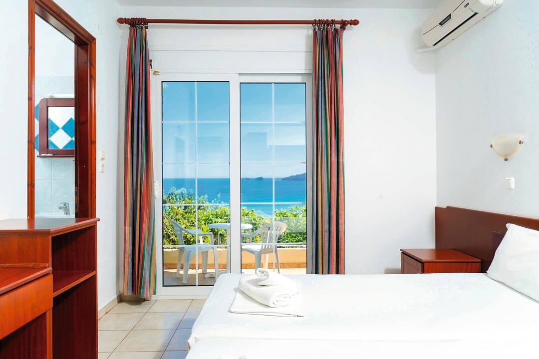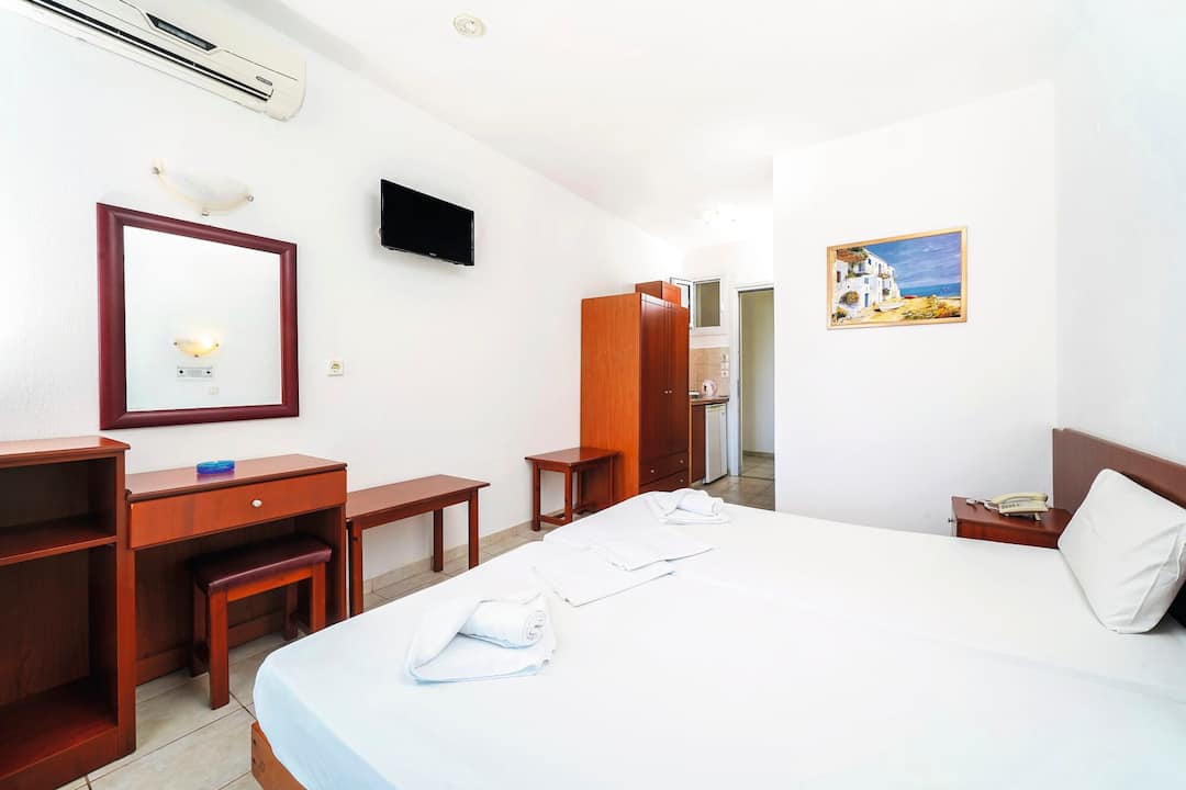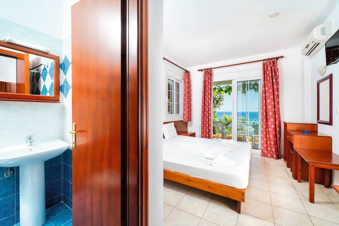 Located in the quaint family surroundings of Golden Beach, the Smaragdi II Studios provides a rustic, yet contemporary setting for your holidays to Thassos. Adorned with fertile shrubbery and traditional architecture, you’ll find yourself just minutes’ walk from a Blue flag beach, where you can sunbathe and soak up the local atmosphere. You have access to a pool via a neighbouring hotel pool, which also has a bar and plenty evening entertainment. Smaragdi’s quaint setting and awe-inspiring hilltop views make it the perfect destination for a quiet romantic break. It’s located a short walk from the Golden beach resort, where you’ll find a range of authentic Greek bars, restaurants, and international cuisine. Access to Thassos island is readily available by ferry from the mainland, making it easy to escape the tranquility of the surroundings – if you really want to.