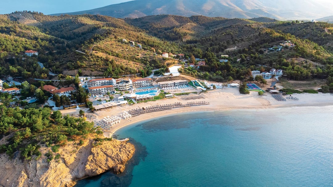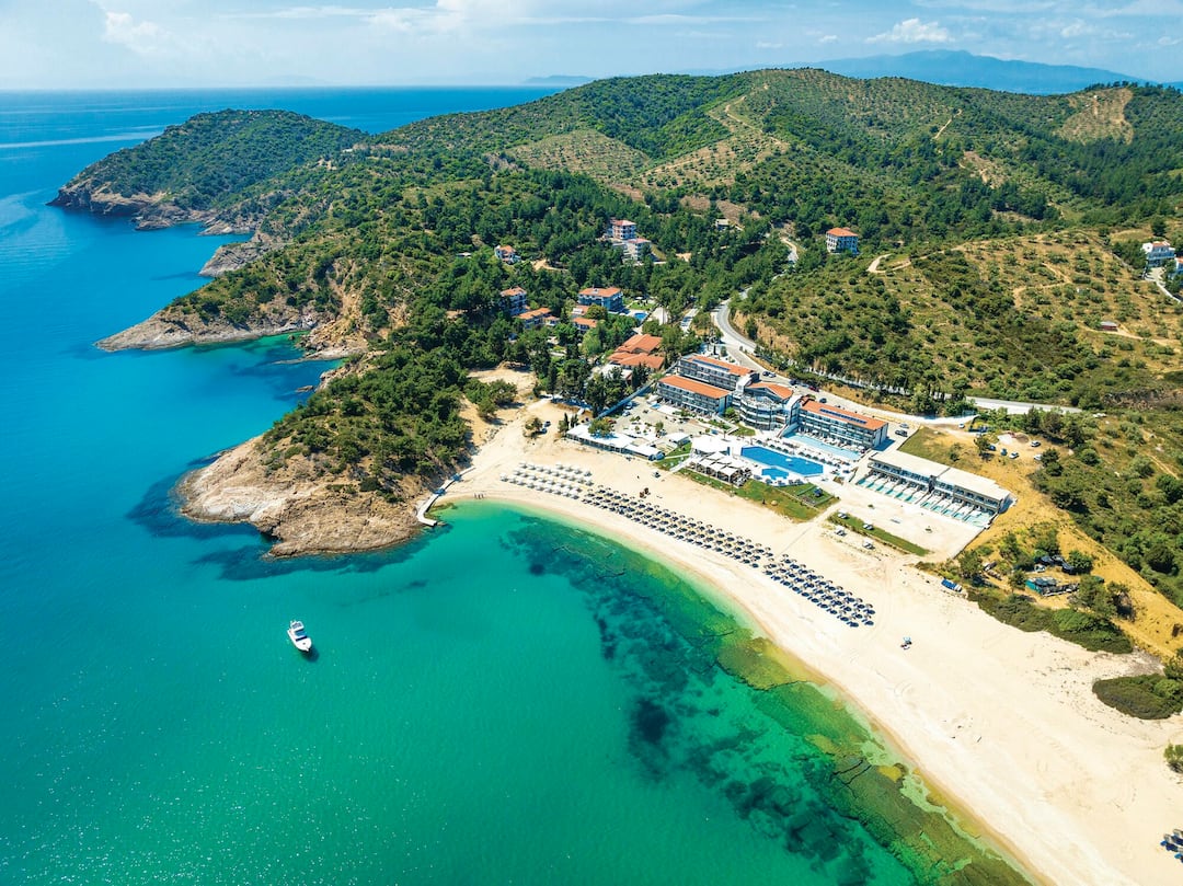 The quaint village of Limenaria offers the usual charm of holidays to Greece with an array of harbourside restaurants, shops and bars. This large yet peaceful resort boasts wide, sandy beaches surrounded by dramatic red rock cliffs, while the stunning mountainous terrain is scattered with pine and olive trees.