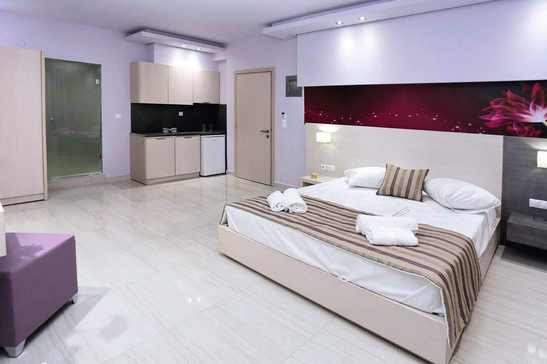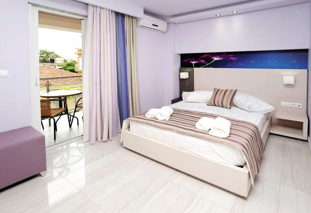 The pocket-sized Villa Giannis only has nine rooms, so it feels really exclusive. The rooms are incredibly contemporary and chic. Expect a mauve colour scheme and artistic prints above the headboard.