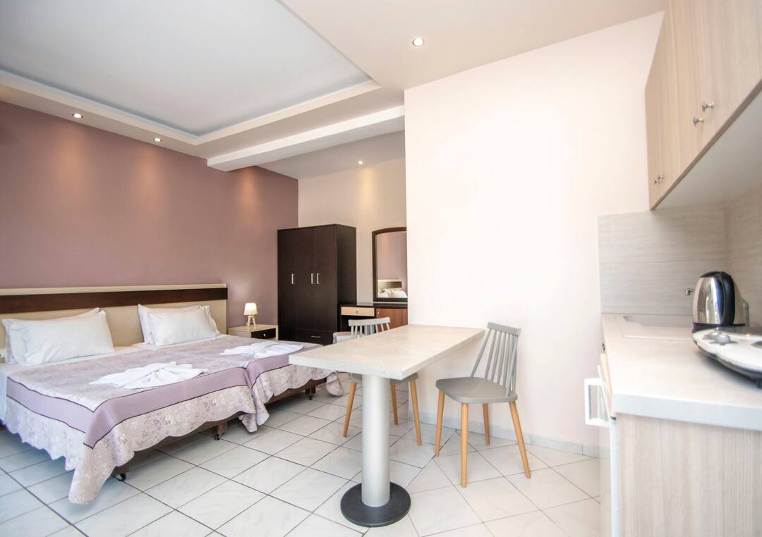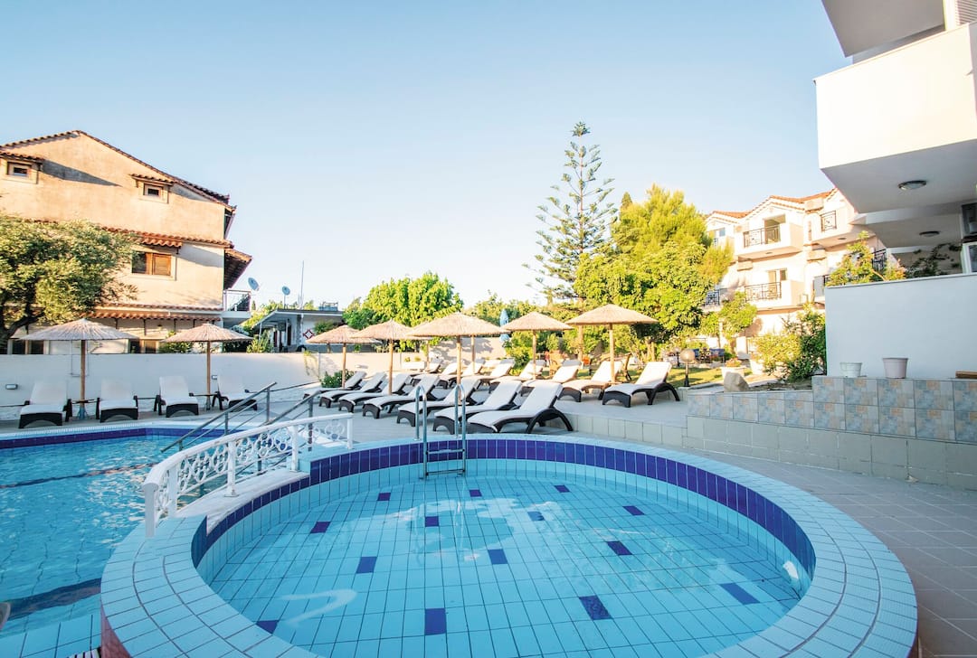 Everything you love about Greek culture is captured perfectly in the family-run Avra Studios. Overlooked by forest-covered mountains, these terracotta-coloured apartments create a homely atmosphere for visitors here. Avra Studios are light and airy, and well equipped for a relaxing self-catering break – and there’s a mini-market on your doorstep for essentials. Each apartment has its own balcony or terrace, so your meals are enjoyed al fresco. In the centre of the resort is a large pool, with its own sun terrace dotted with loungers and parasols, plus a dedicated children’s area. And with its friendly bar serving cocktails and snacks late into the evening, you’ll soon leave your cares behind.