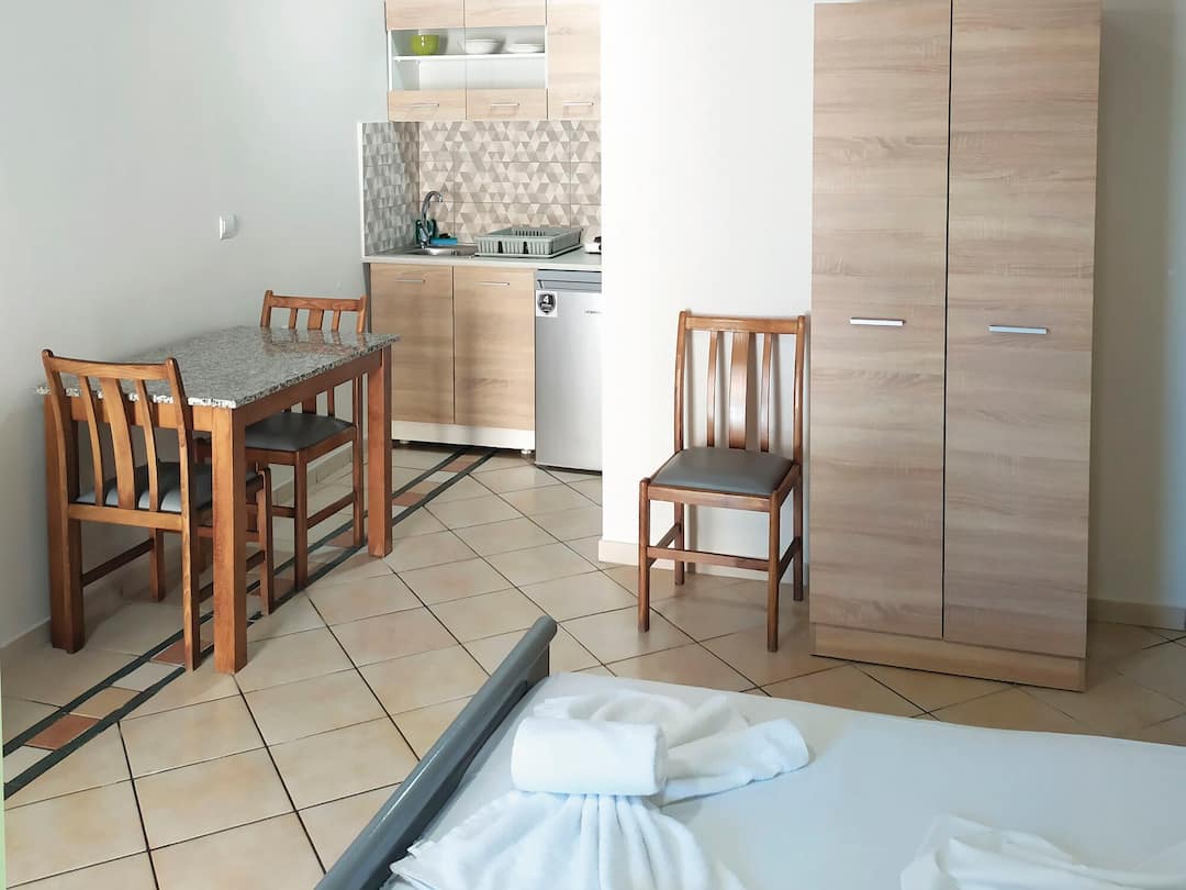 There’s a peaceful and relaxing vibe at the Zante Dolphin Studios and Apartments. You can knock up meals in your own kitchenette, but there’s also a snack bar and the occasional barbecue.