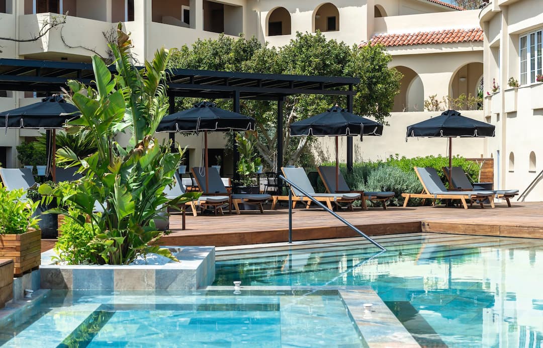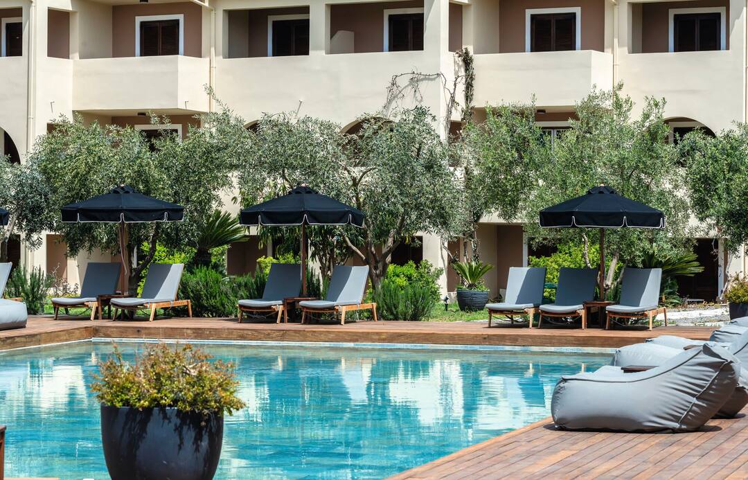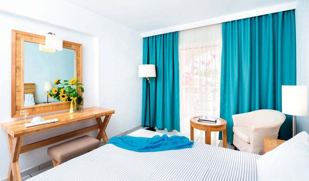 The all-inclusive Bitzaro Palace Hotel is a perfect spot for a quiet family holiday or romantic break. The hotel oozes authentic Greek charm with its white washed exterior, colourful gardens and wooden sun terrace. The kids will love the grassy play area and shallow swimming pool. The main pool, surrounded by palm trees is close to the lounge bar complete with satellite TV. There’s a hot tub for those balmy evenings, and the buffet restaurant is bursting at the seams with delicious Mediterranean cuisine. Evening entertainment includes live music and a Greek night or head for Kalamaki’s strip, just five minutes away, for a night on the town.