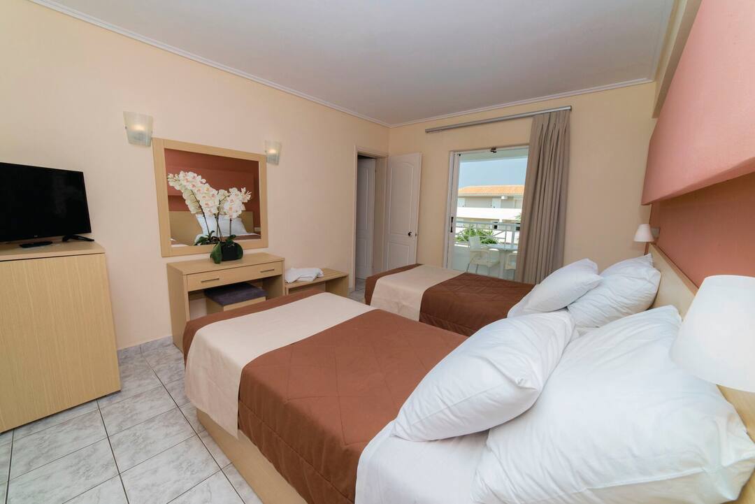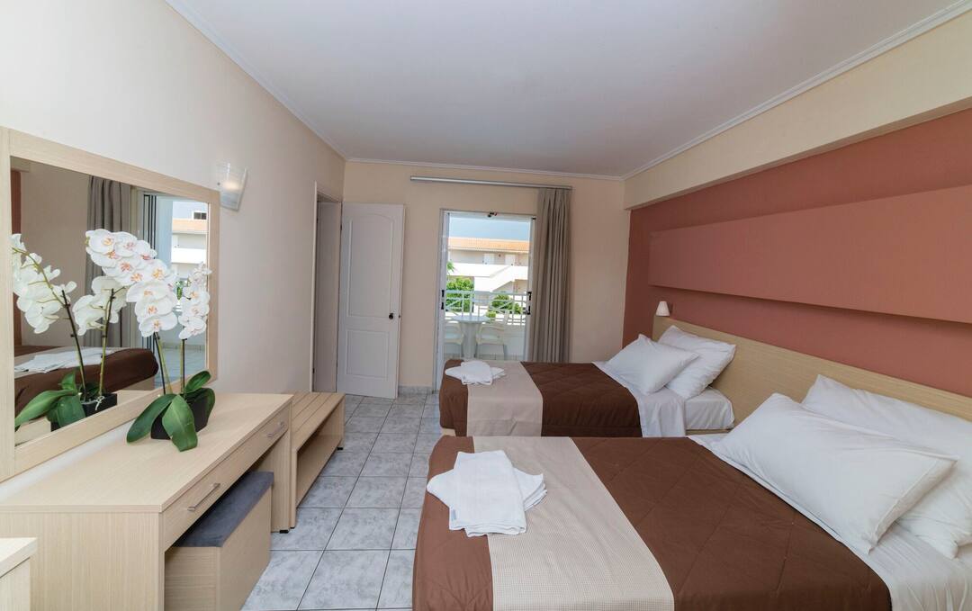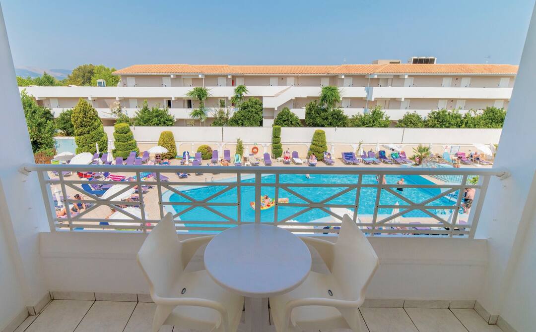 Start your day with a continental buffet style breakfast or enjoy the hotel’s evening meals which include traditional Greek cuisine from an a la carte menu. The hotel’s twin and double rooms are elegantly furnished with views of the pretty gardens and the pool.