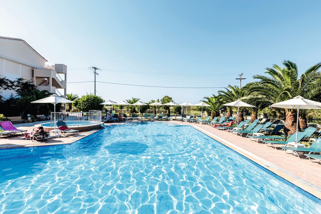 Located just a short walk from the beach, the white-washed buildings of the Ionian Blue Hotel offer a traditional Greek experience while providing all the modern amenities and activities you’ll need to enjoy a wonderful family holiday. Take a five-minute stroll to Kalamaki Beach and its bustling town centre filled with bars, eateries and thriving activity. The hotel offers a relaxed family feel with a large pool and a separate children’s area for kids to have fun. You can also take advantage of the large sun terrace and poolside bar offering snacks and traditional Greek cuisine, as well as delicious breakfasts every morning.