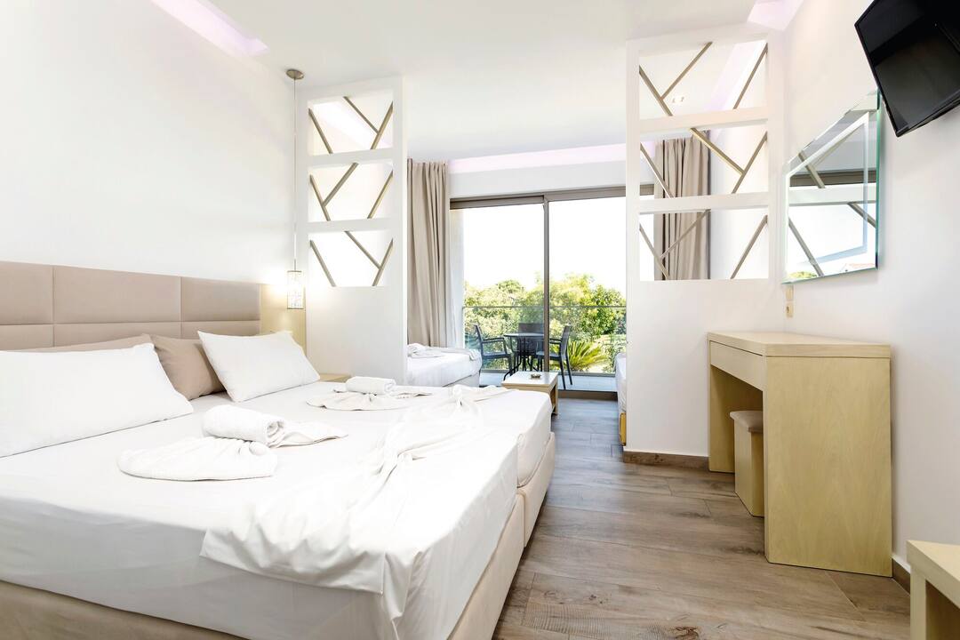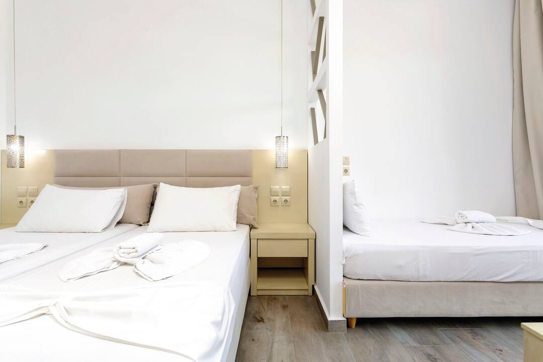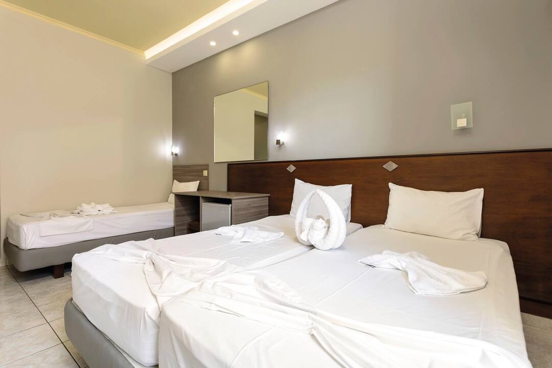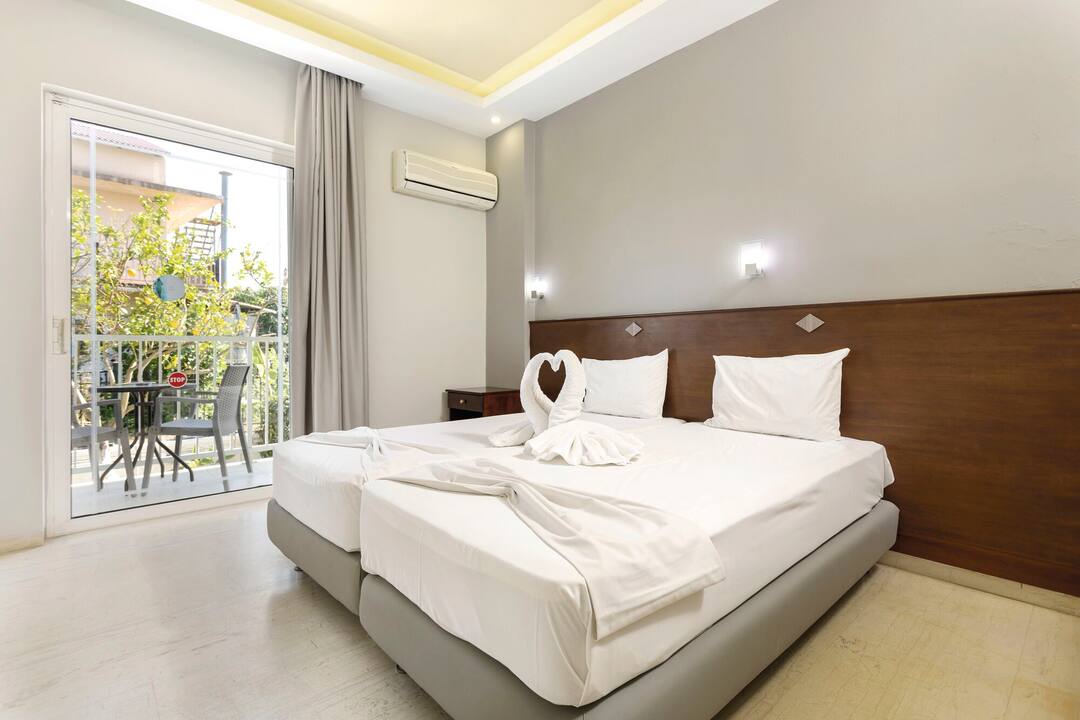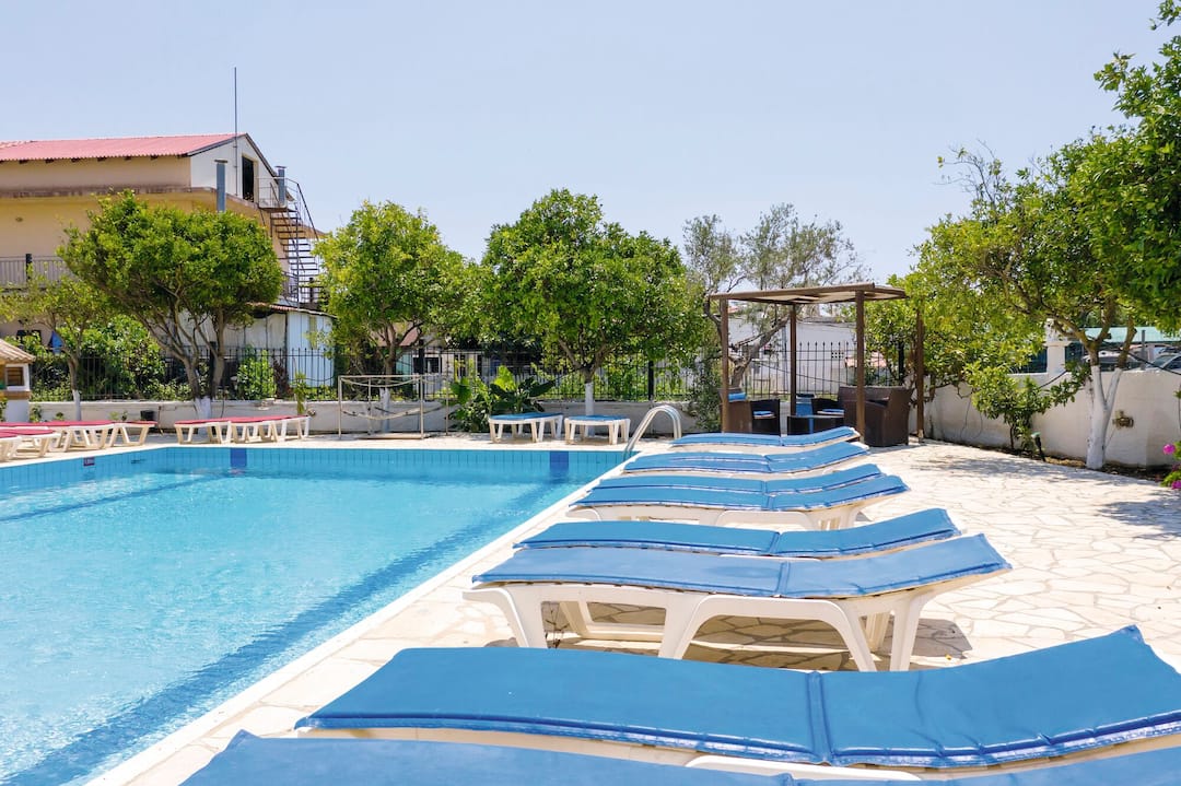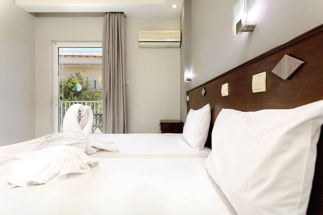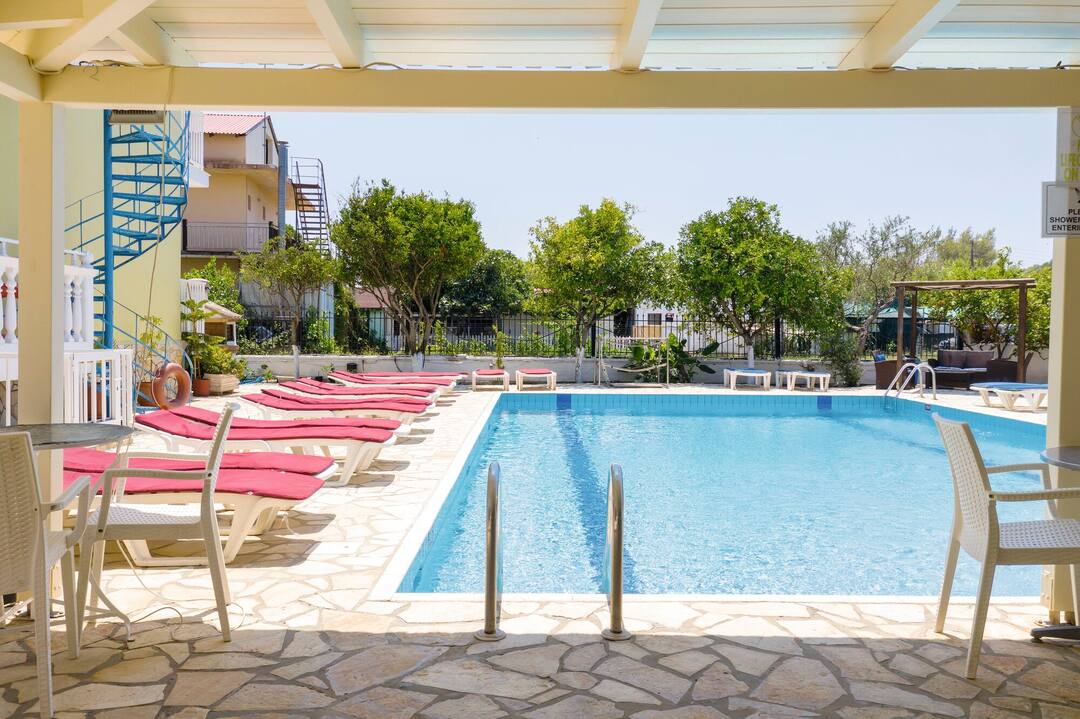 Angela Hotel are perfect if you want easy access to all of Laganas’ fun and excitement, while still having all the amenities a holiday should offer.Finished in an elegantly minimalist style, rooms are comfortable and clean. They are close to the generous pool where sun loungers and a lively bar awaits. The beach is 10 minutes away on foot. And, being on the main strip, Angela Hotel are moments from the lively nightlife and choice of bars and restaurants of Laganas.