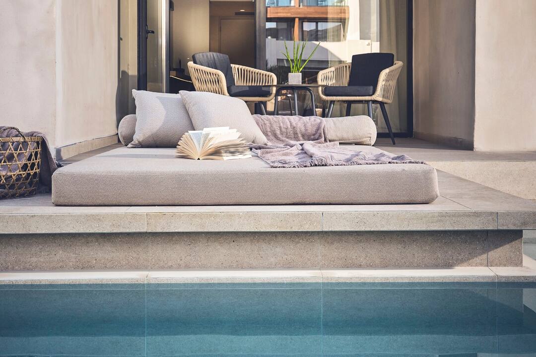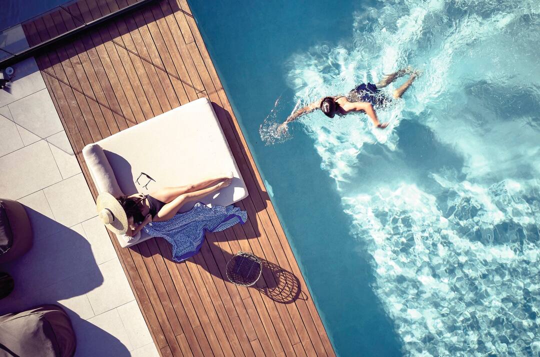 Outside, there’s plenty of space on the sun terrace that allows you to soak up the rays. As well as a pool, there’s a playground for kids here. To keep everyone topped up, there’s even a poolside snack bar.