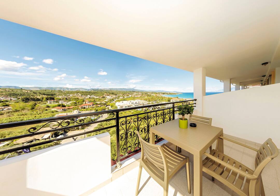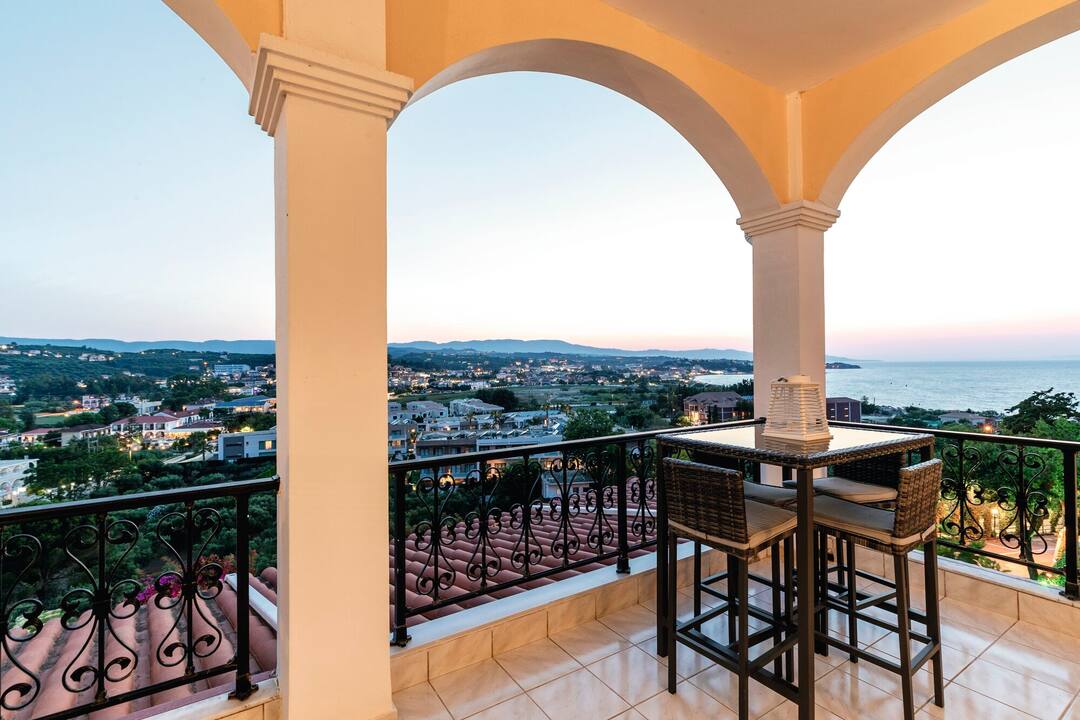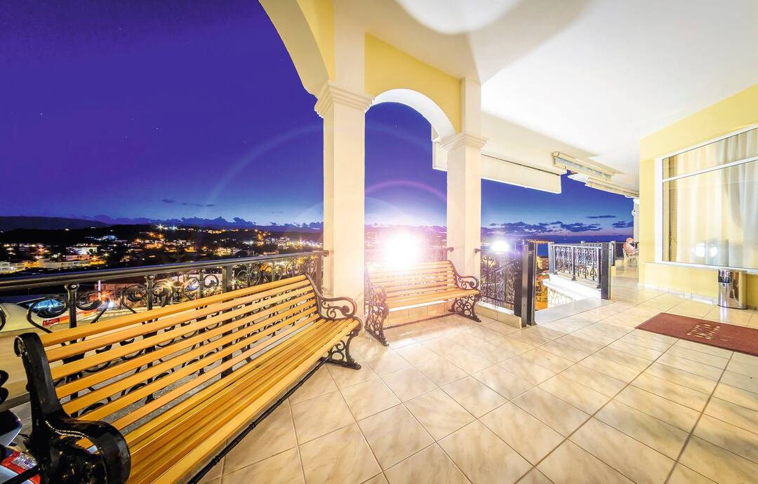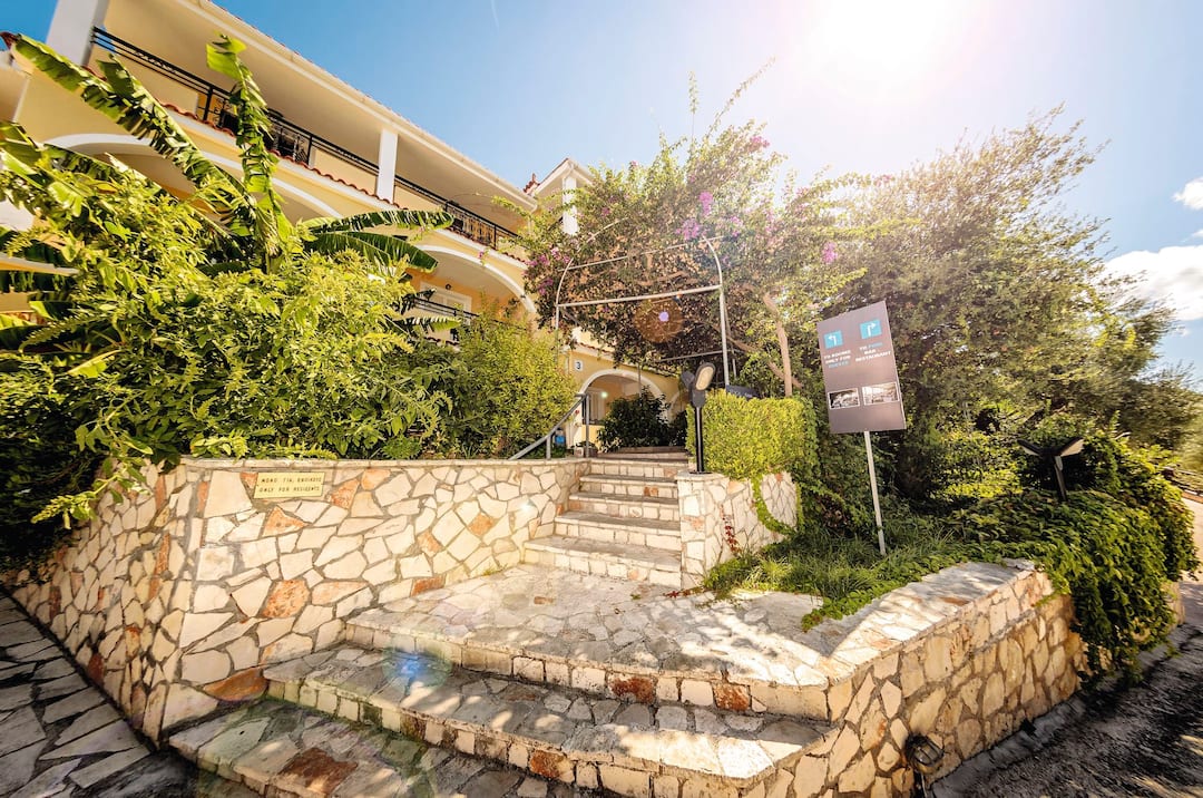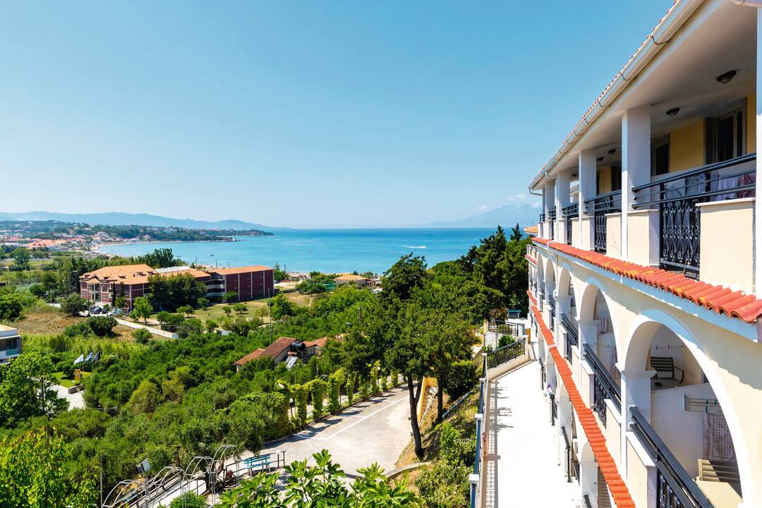 The Zante Palace is perched on a hill. As a result, it combines knockout sea views with a near-the-action location.
