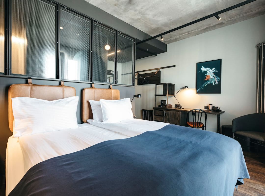 The Exeter Hotel is a modern and stylish hotel in the heart of Reykjavik. The hotel’s set in a century-old house that has been restored with an industrial chic image in mind. The decor is minimal but modern, with snazzy features like smart TVs and quirky artwork in the rooms.