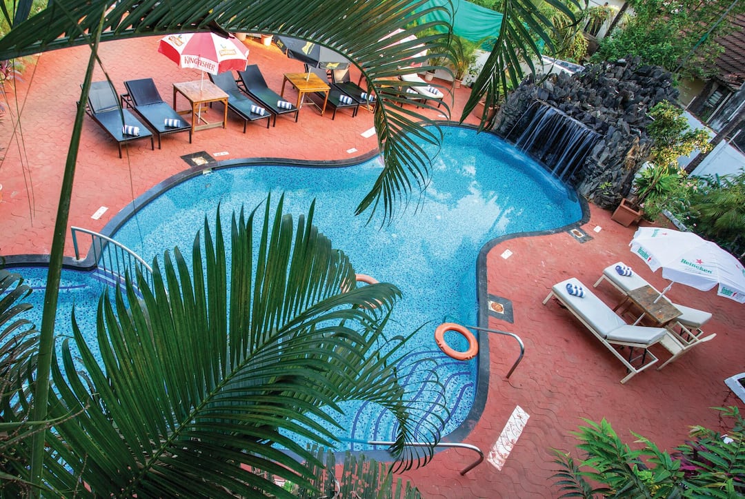 The Silver Sands Sunshine combines a central location in Candolim with an exotic-looking pool.