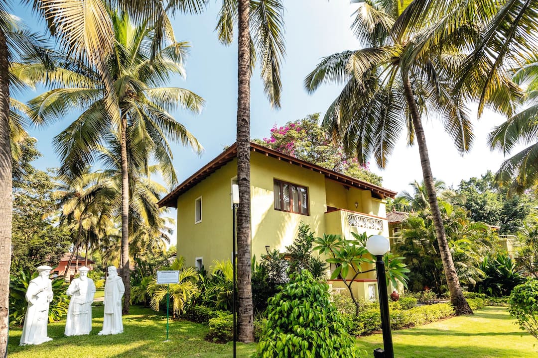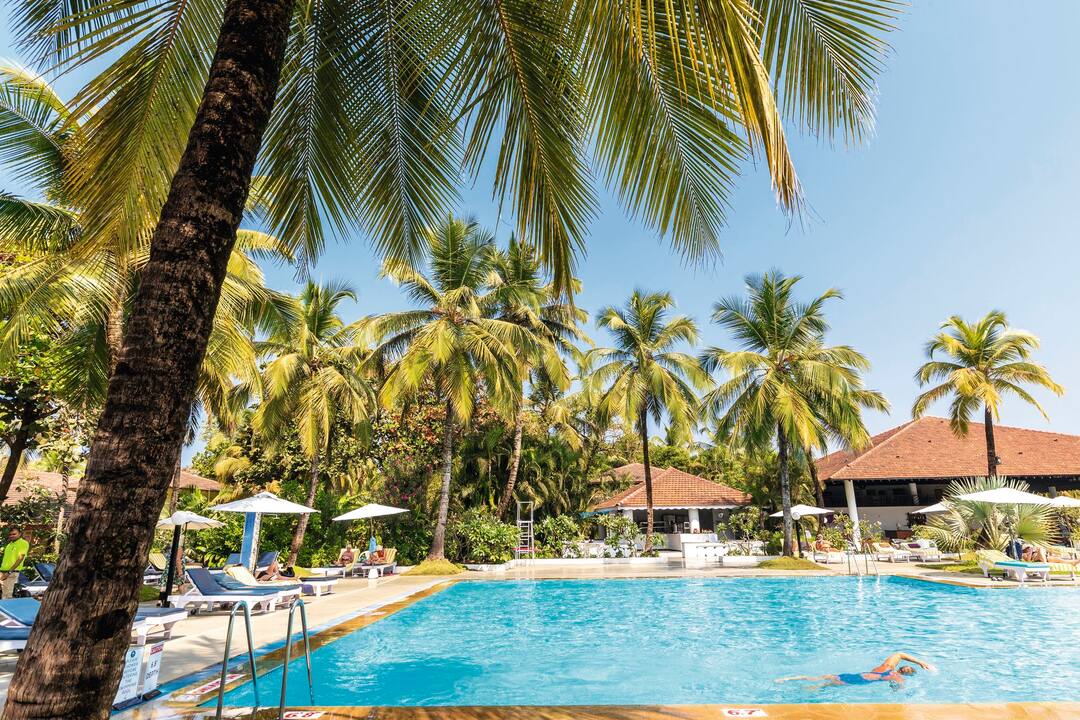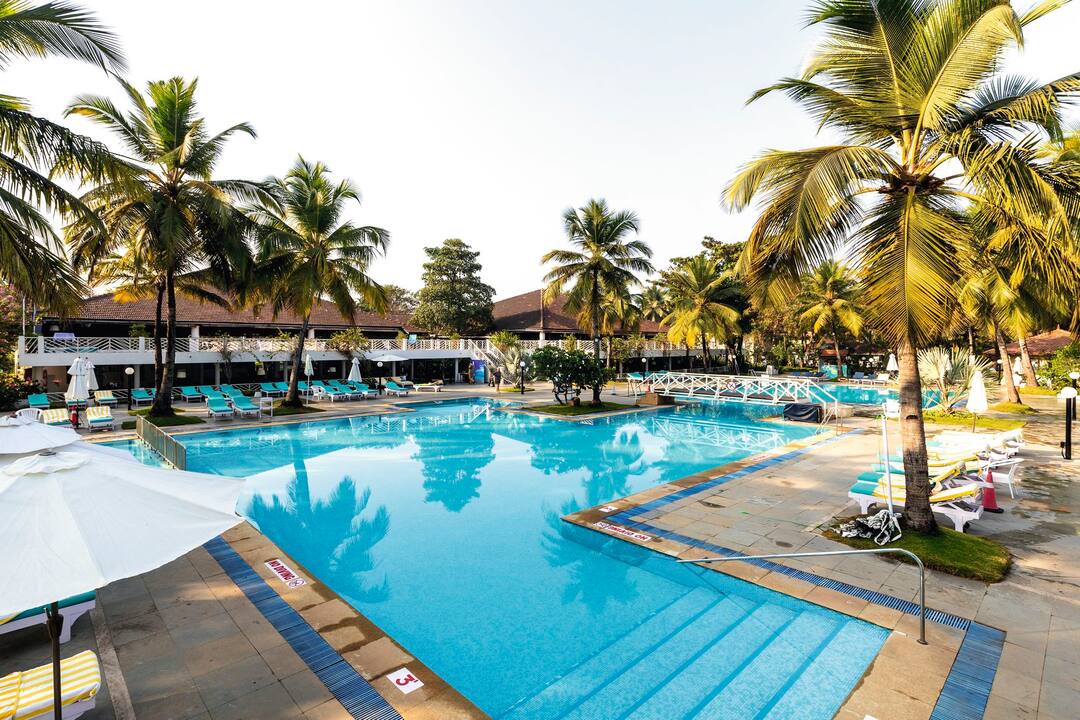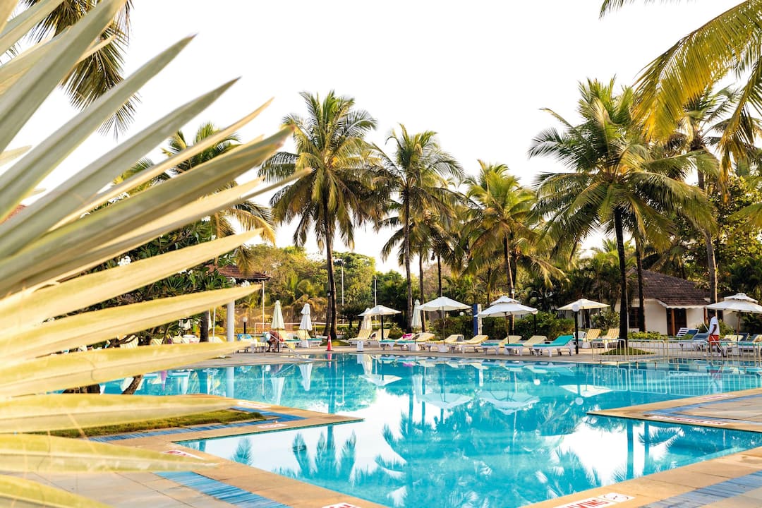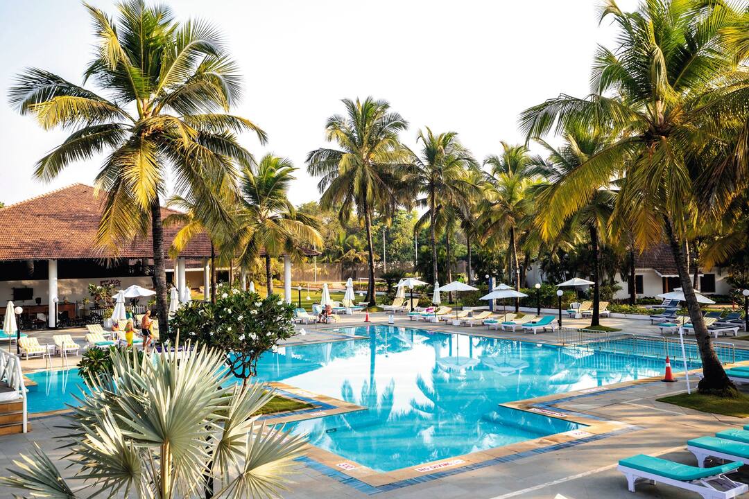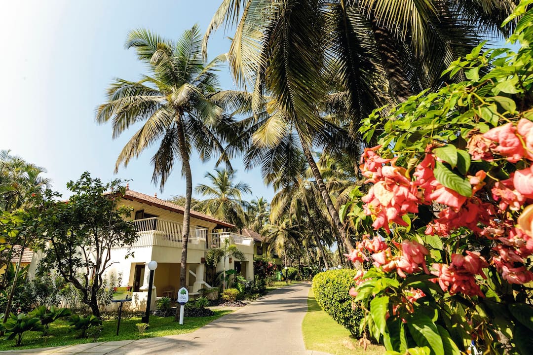 The hotel is located in Cavelossim, where holidaymakers go in Goa to get away from it all. A haven for sun worshippers, outside the hotel you’ll find a heavenly sandy beach, lofty palms and a lively village centre packed with market stalls, eateries and cafes.
