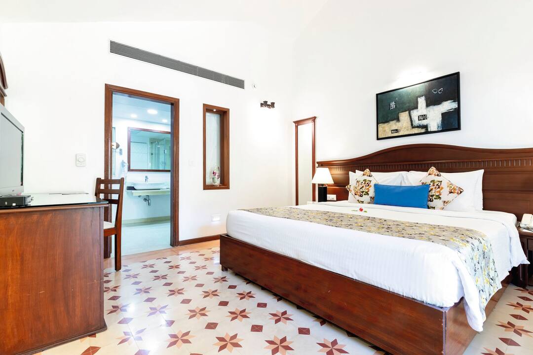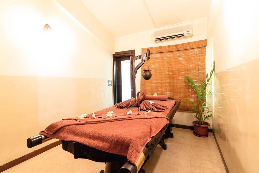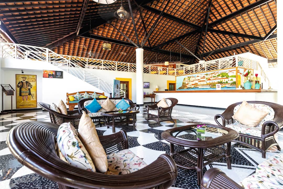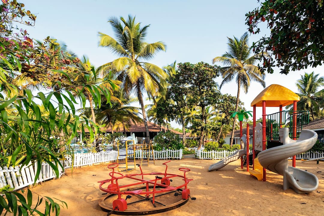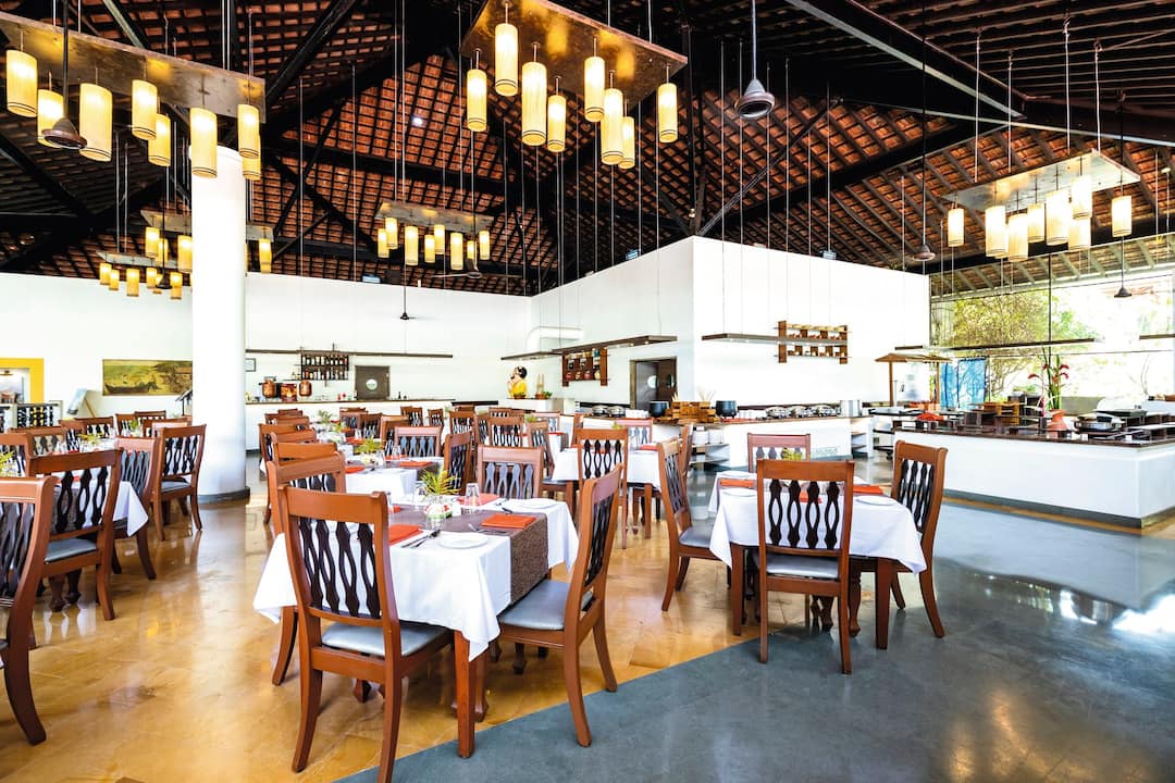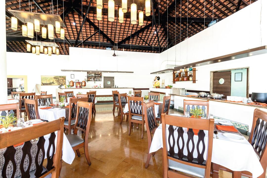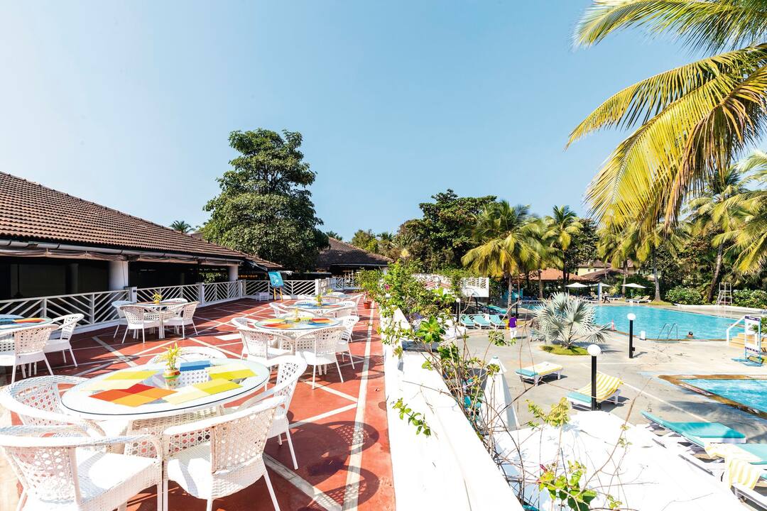 The hotel is located in Cavelossim, where holidaymakers go in Goa to get away from it all. A haven for sun worshippers, outside the hotel you’ll find a heavenly sandy beach, lofty palms and a lively village centre packed with market stalls, eateries and cafes.