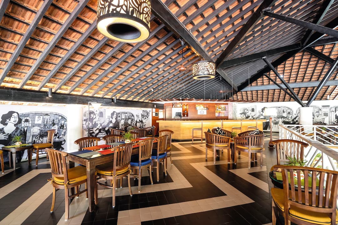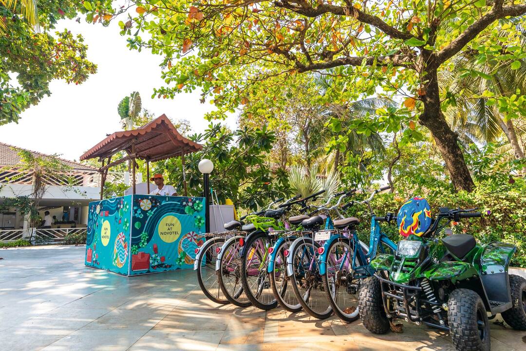 Directly outside the Novotel Goa Dona Sylvia Resort, there are restaurants and bars, as well as a shopping mall.