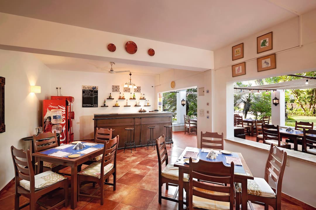 The pool is set on a panoramic terrace that overlooks neighbouring Dias Beach. Cushioned sunloungers and colourful gardens unfold behind it, while the restaurant specialises in grilled food, and blends Portuguese and Indian cuisine.