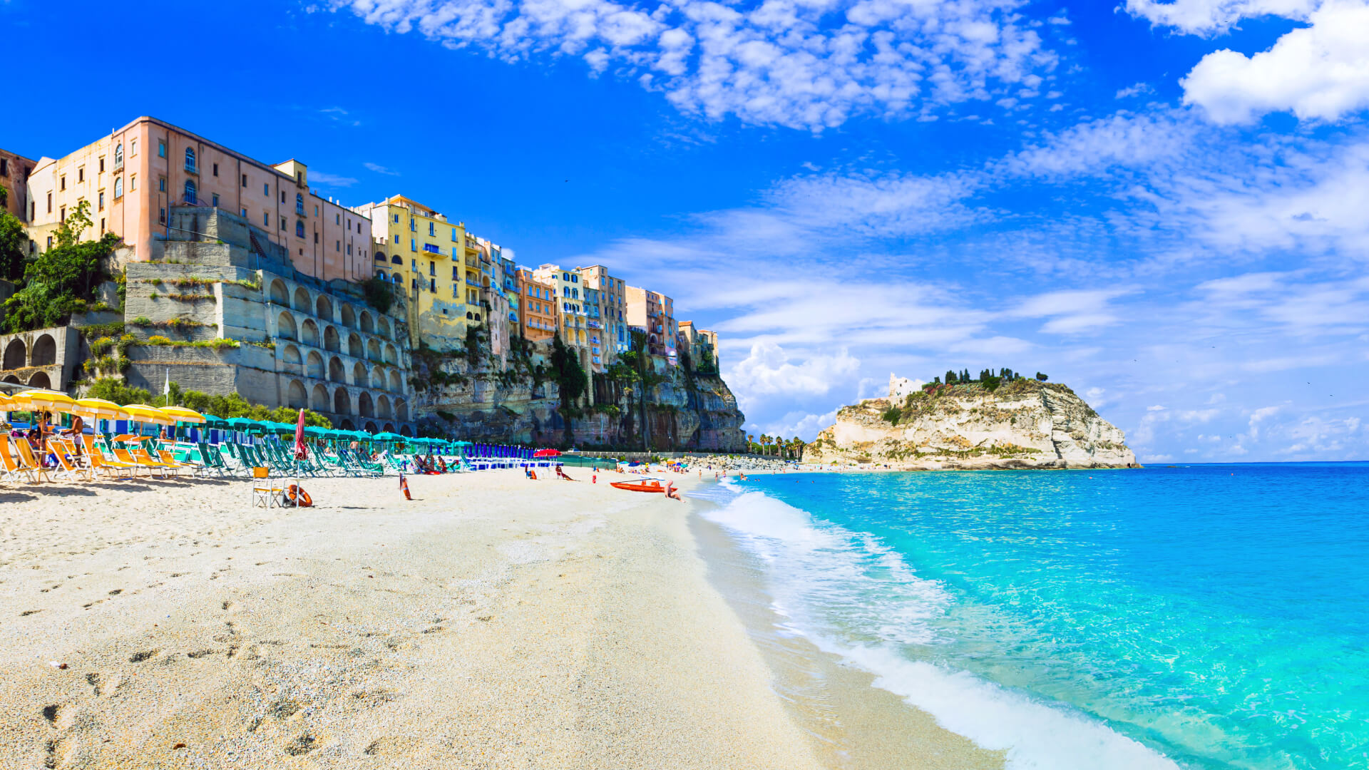 One of the most popular and stunning beaches on the Coast of the Gods is Spiaggia di Tropea, where the azure sea gently laps a stretch of white sand. The beach offers amazing views of the volcanic island of Stromboli smouldering on the island.