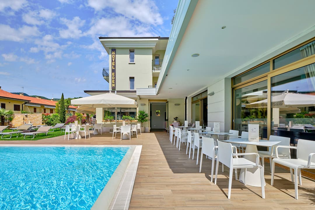 The family-run Eden Garda Hotel is stylish and modern. The rooftop terrace comes with a whirlpool where you can admire the beautiful views of Garda. If you’re feeling thirsty, you can even call for bar service! Elsewhere, there’s a large outdoor pool and sun terrace surrounded by lush gardens.