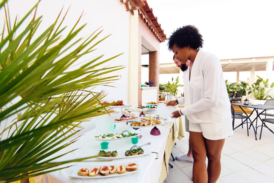 The buffet restaurant at the hotel serves Mediterranean cuisine and local dishes, while al fresco dining by candlelight is common.