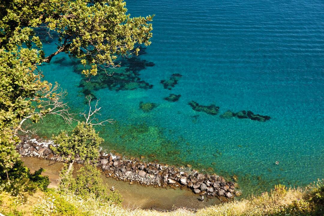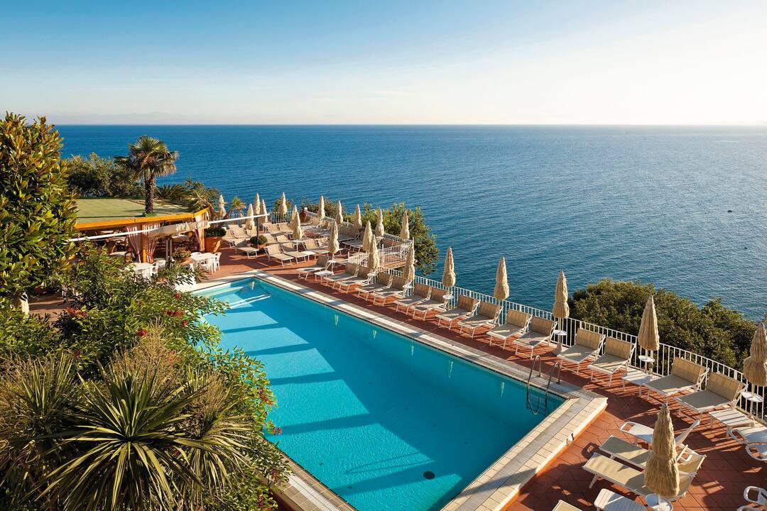 The hotel’s pool comes with sweeping Mediterranean views, but the pretty-as-a-picture bathing platform sits in the Bay of Cafiero.