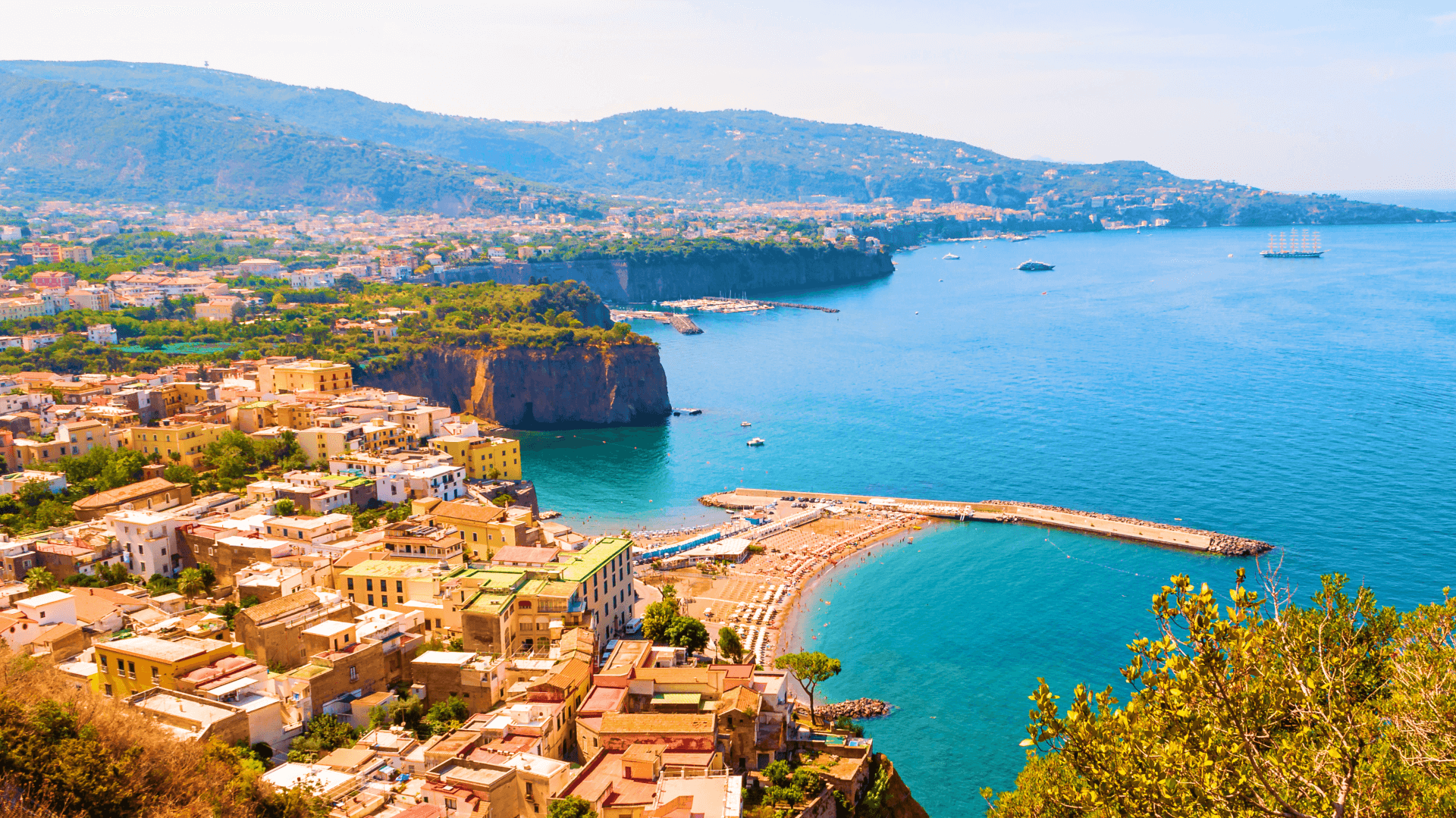 The beach at Sant Agnello may be small but it is perfectly formed, hugging the rocky coastline, overlooked by spectacular cliffs and quieter than most of its neighbours even during the peak summer season. There are steps and an elevator down the steep incline and on a clear day you can even see the imposing Mount Vesuvius looming in the distance. There are shower and toilet facilities plus a couple of refreshment stalls; all you need for the perfect day at the beach on holidays to Sant Agnello. For a change of scenery, Punta Sant Elia is just along the coast and a few miles to the north lies the Bay of Leranto with small green islets and a quaint Italian harbour.