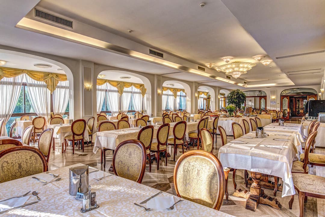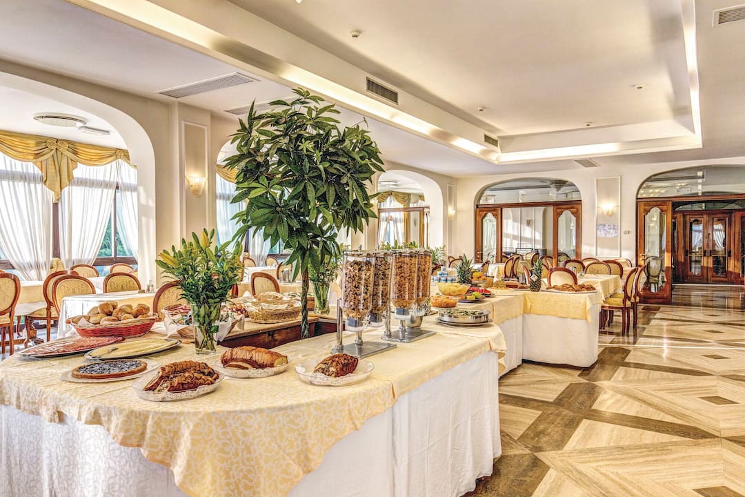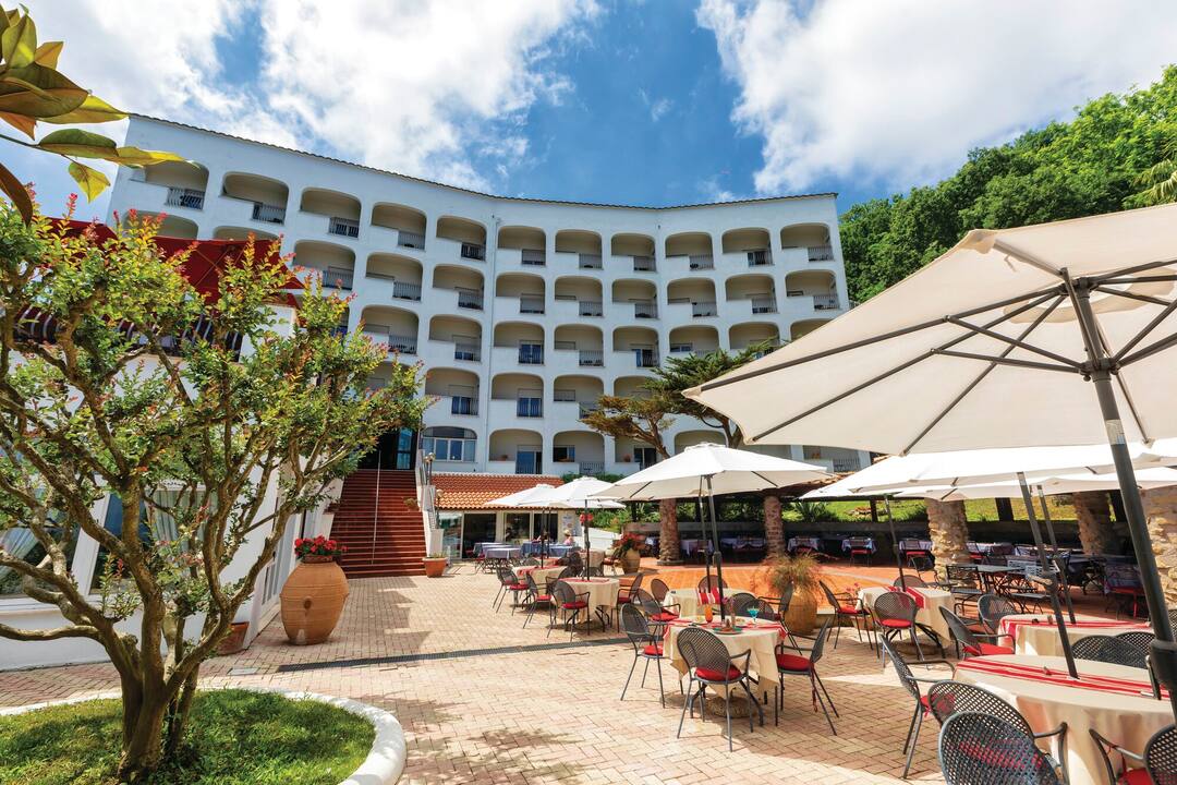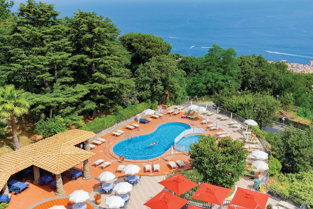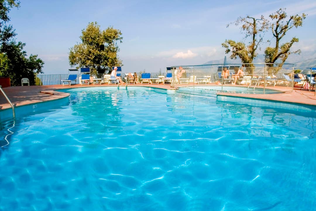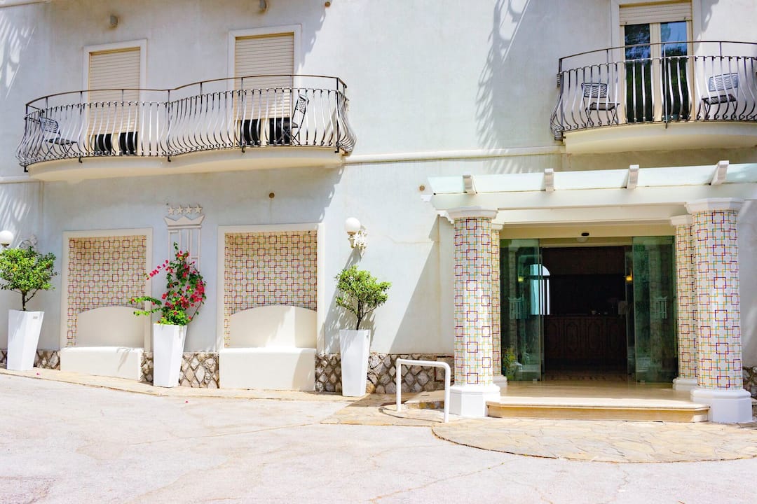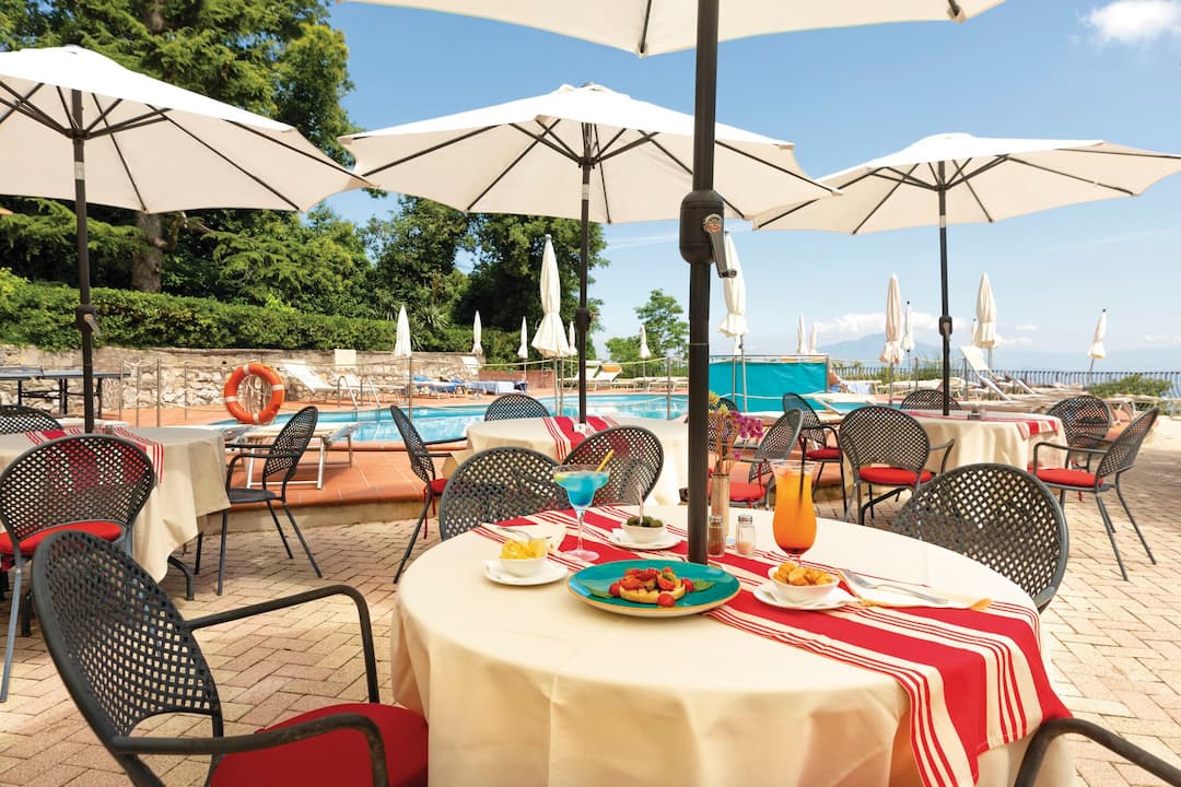 At the Grand Hotel Hermitage, you get standout views over the Bay of Naples. The hotel oozes old-world charm thanks to its whitewashed walls and the gardens that are bursting with fruit trees. Inside, rooms are colourful, with tiled floors and antique furniture. Some also come with a sea view.
