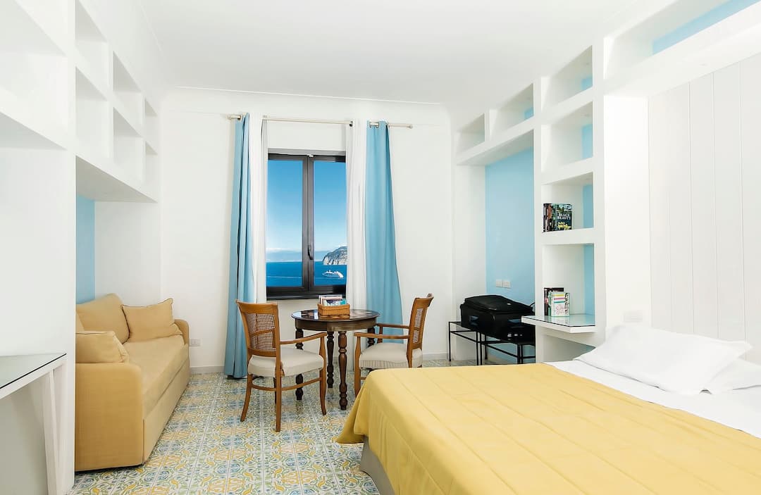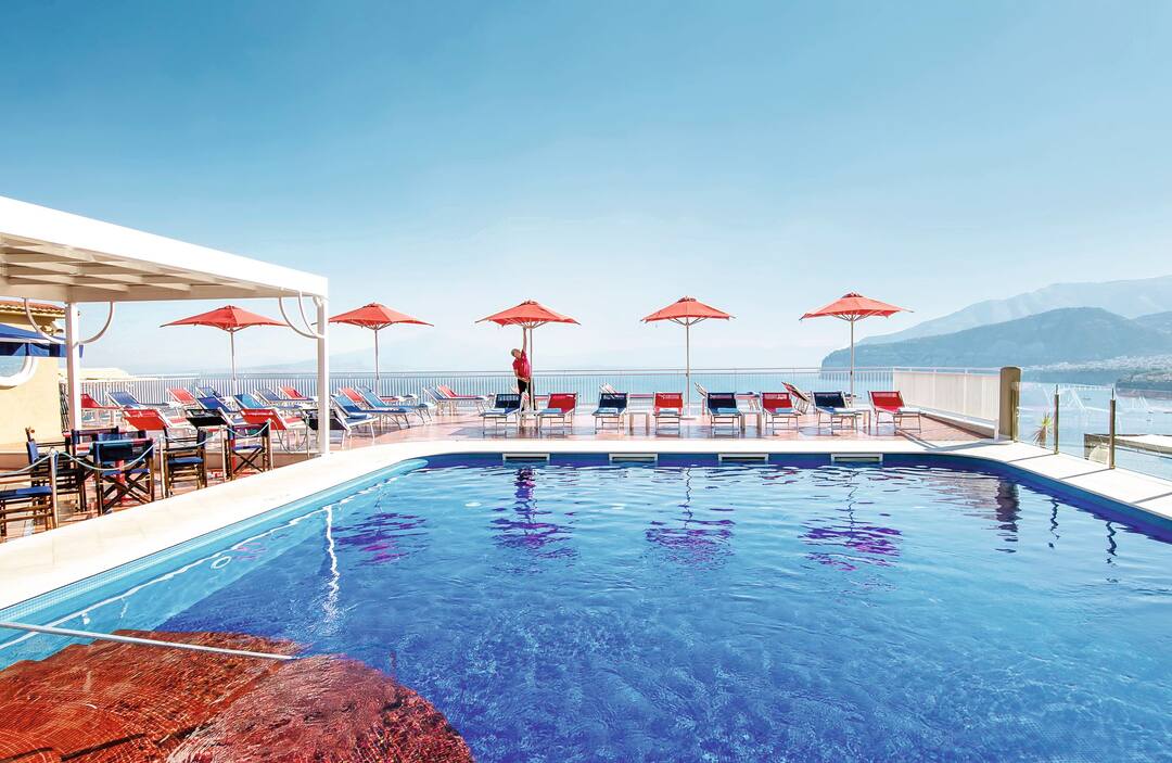 Overlooking the Bay of Naples and the harbour and beach of Marina Grande, Hotel Minerva offers mesmerising views from sunrise to sunset. What’s more, you can take in this view while lounging around the rooftop pool or sipping a cocktail from the pool bar. When it comes to dining you’ve got plenty of options. The international buffet restaurant has huge arched windows offering the same first class view, but on the warmer days, the terrace will be open for you to dine al fresco – the perfect backdrop for a romantic moment. Enjoy delicious dishes for breakfast, lunch and dinner and wash it all down with a drink or two in the Minerva bar. In just a 15 minute walk you’ll be in the heart of Sorrento, exploring the many shops, bars and restaurants and soaking up everything from the paradise you’re in.