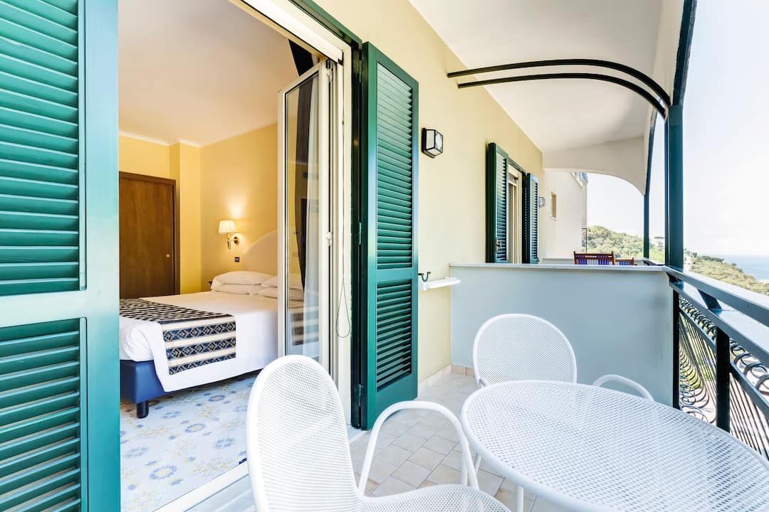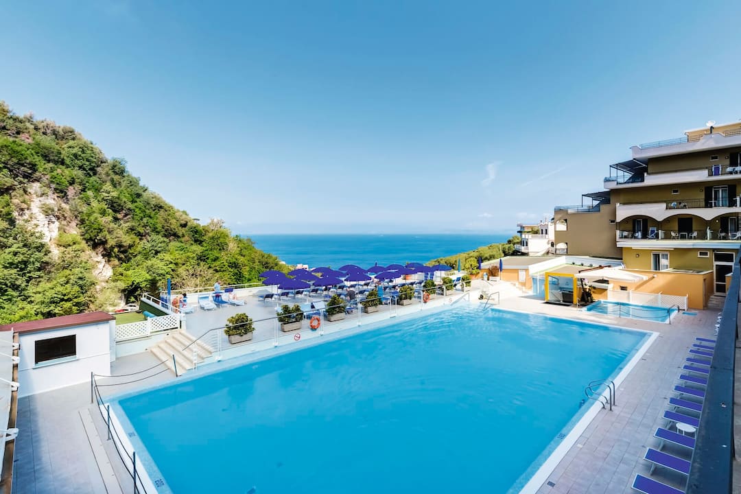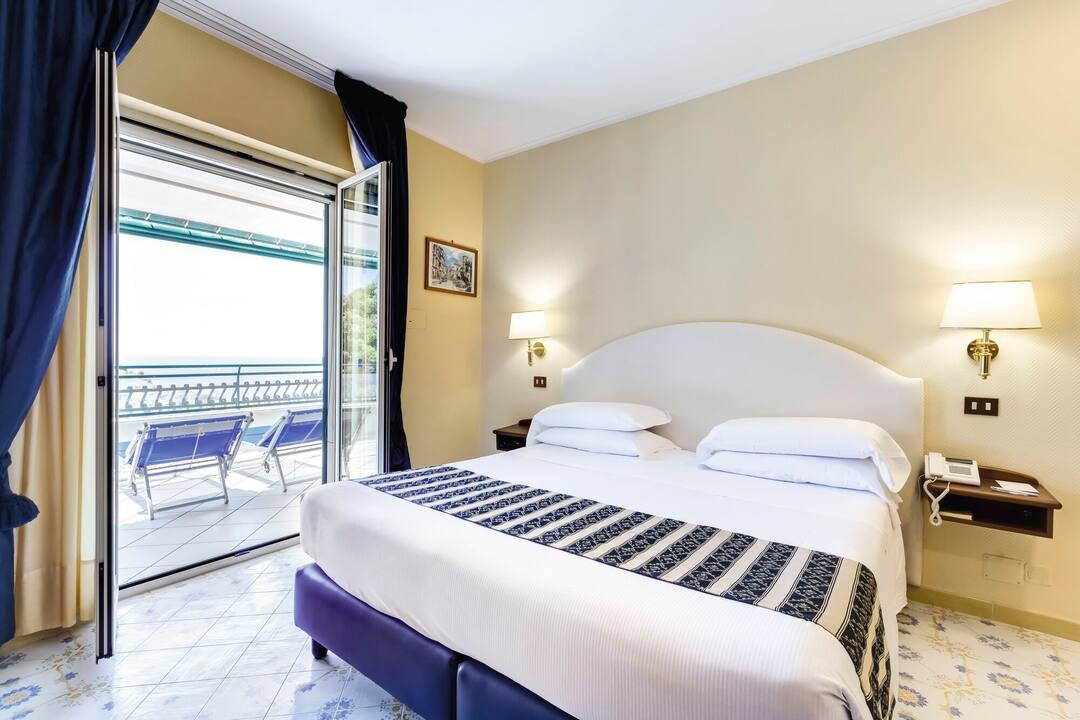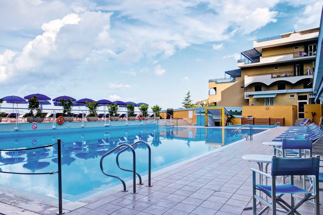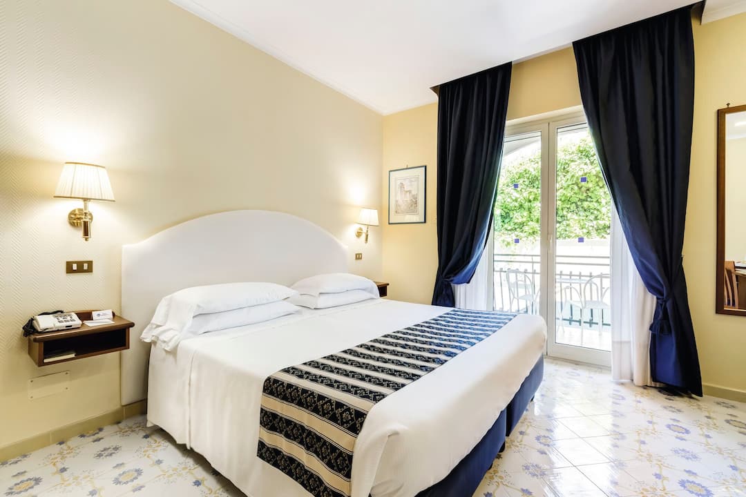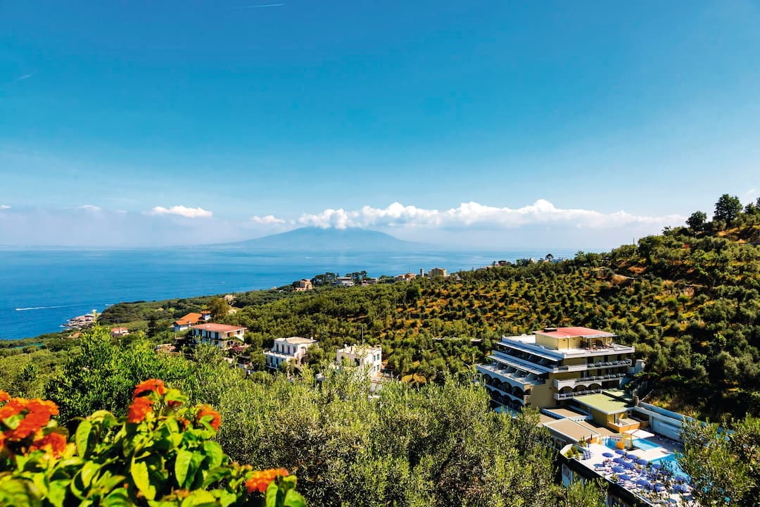 This four-star hotel is just two kilometres from Sorrento. Set in a peaceful location overlooking the Bay of Naples, you have stunning views out to sea. Luxurious facilities include a superb restaurant serving Neapolitan cuisine, a large pool, children’s pool, huge sun terrace complete with sun loungers and parasols and an attractive bar area hosting live music in the evenings. There is also a small gym and table football in the garden. Throughout the day, you can use La Solara Hotel’s free shuttle bus into Sorrento or relax on your delightful pool-side terrace. You won’t tire of the view.