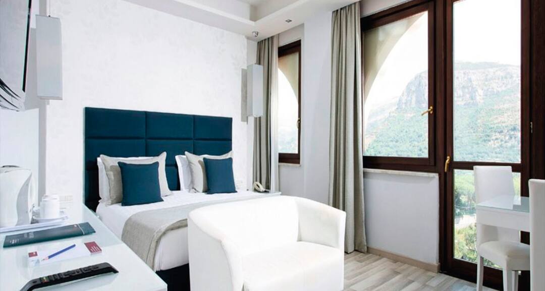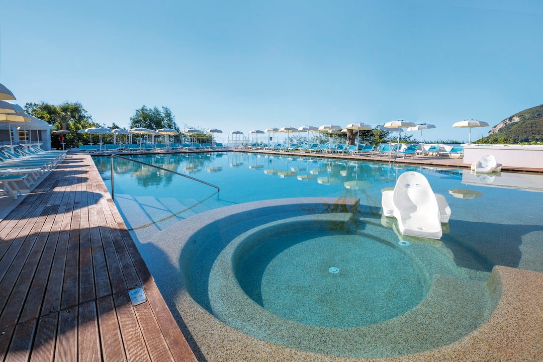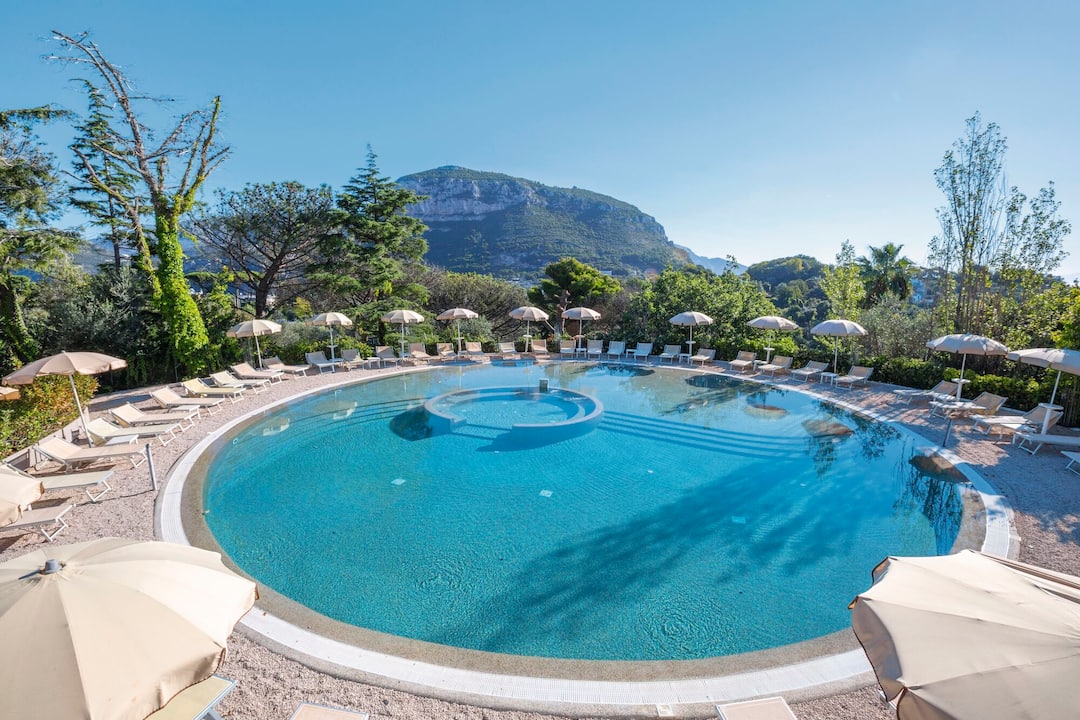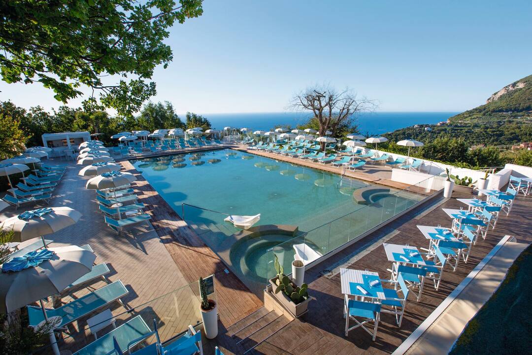 TUI BLUE Nastro Azzurro is a luxurious haven perched high above Sorrento. Enjoying splendid views across the Bay of Naples, this adult-only hotel features contemporary furnishings and fresh decor, complemented by a sleek pool area fringed with sun loungers. Three whirlpool baths await you amid lush gardens, while the impressive spa is sure to lure you in for relaxing pampering sessions. The hotel offers a delicious array of food and drink, from Le Ginistre eatery serving up traditional Italian antipasti to the Culinarium, an a la carte experience headed up by talented chefs. Double rooms at TUI BLUE Nastro Azzurro come with gardens or partial sea views. For an extra-special touch, upgrade to a superior room with a full sea view.