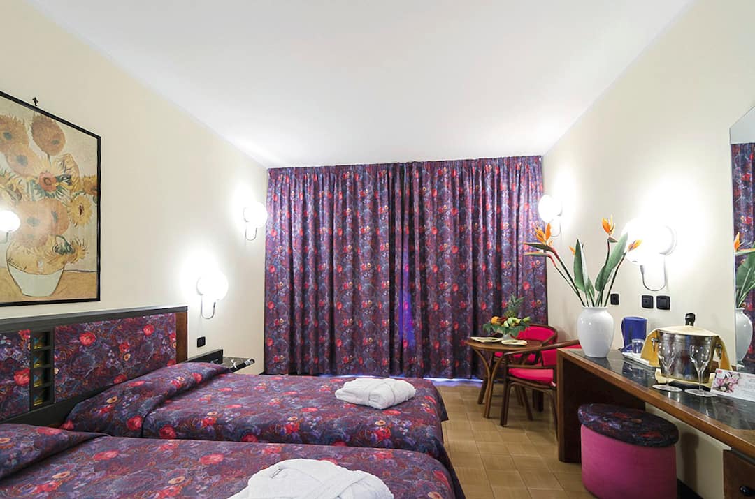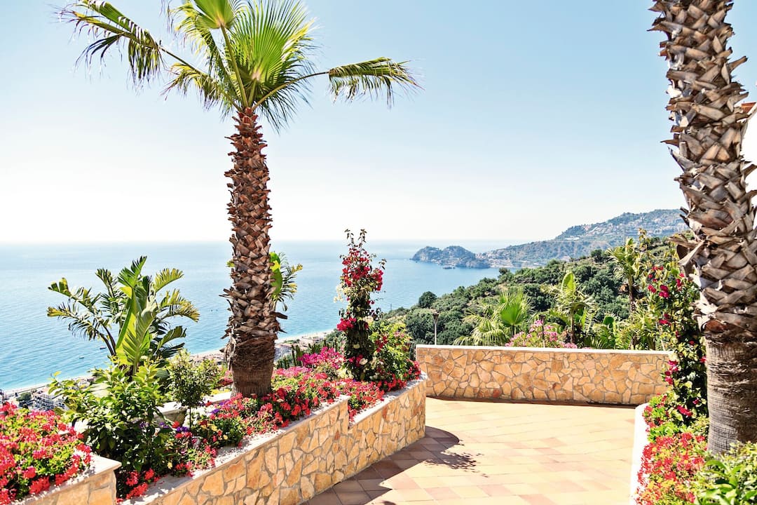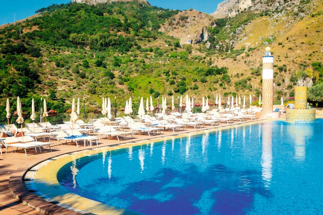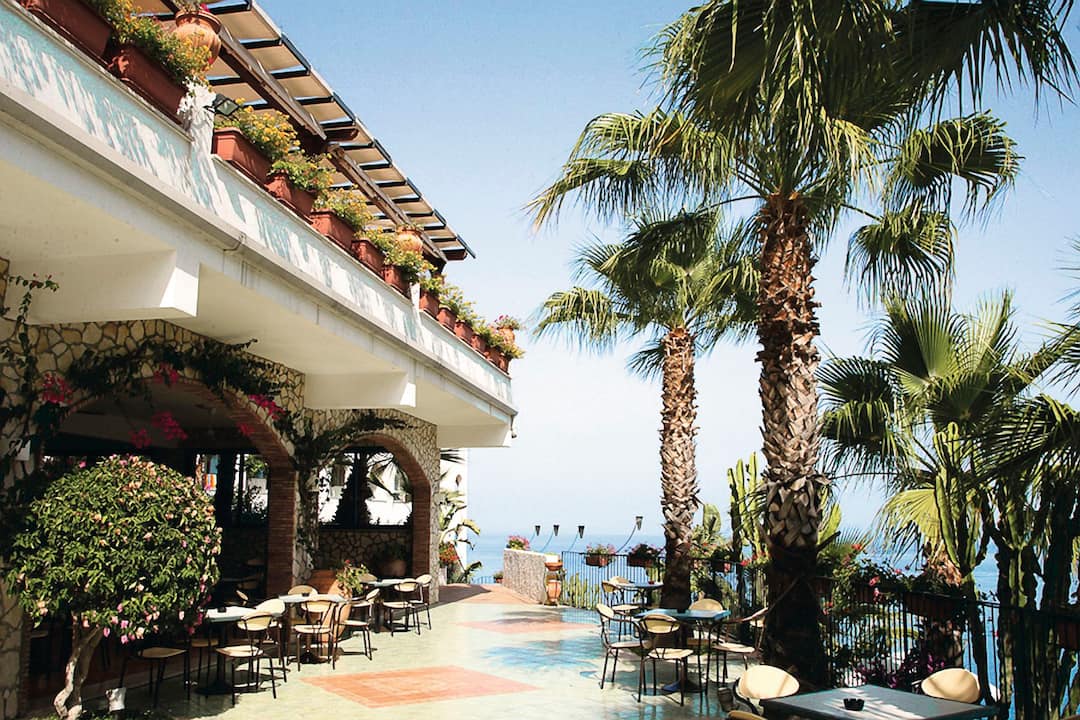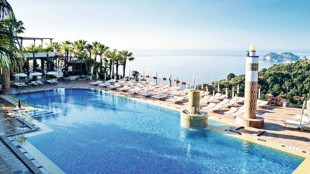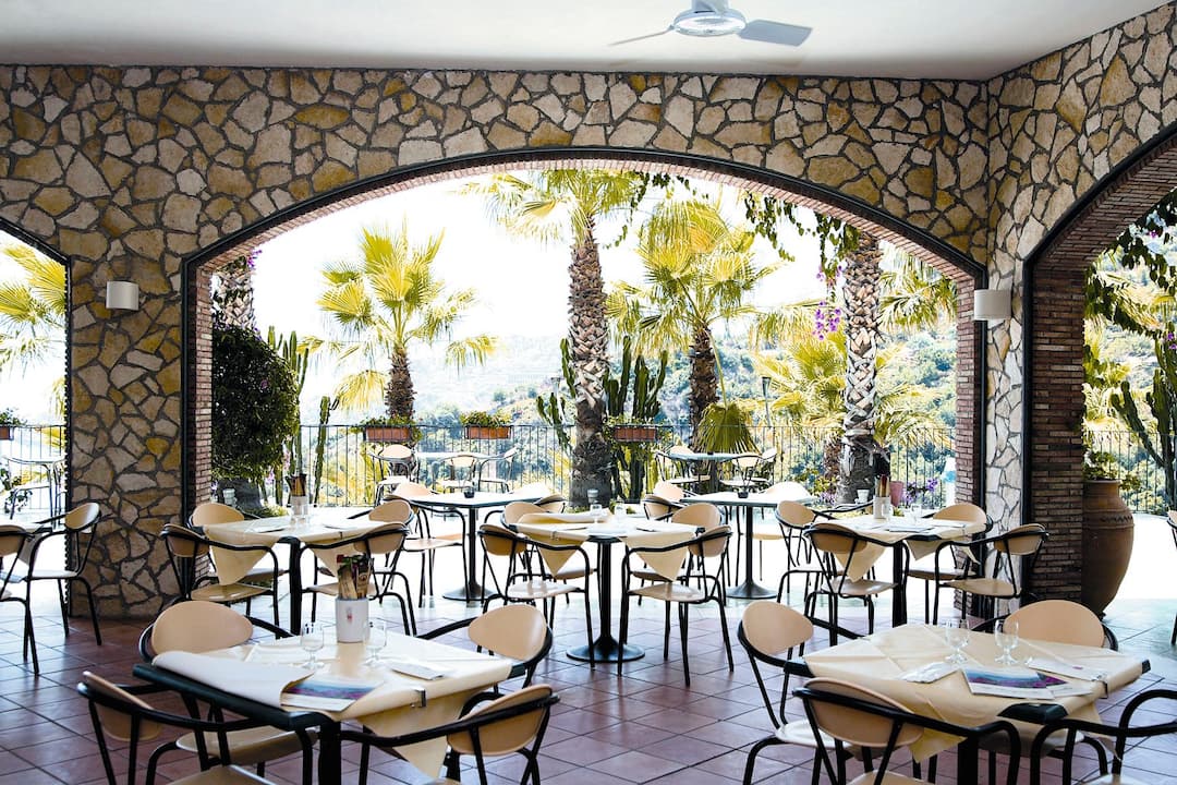 From its hillside, the Parchotel Olimpo looks out over Letojanni and beyond. The hotel has two pools – one indoor, one outdoor – as well as a gym, stream room and sauna. The rooms are bright and fresh, and the colourful interior of the reception has a quirky retro feel. To get your traditional Sicilian groove on, sign up for the weekly music and dancing folklore show in the hotel’s restaurant. When evening rolls around, you’ll want to try something off the hotel’s a la carte menu or help yourself to a selection of fresh local produce from the buffet.