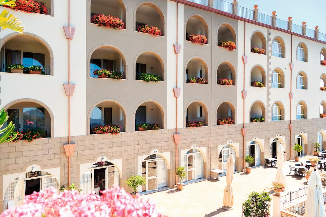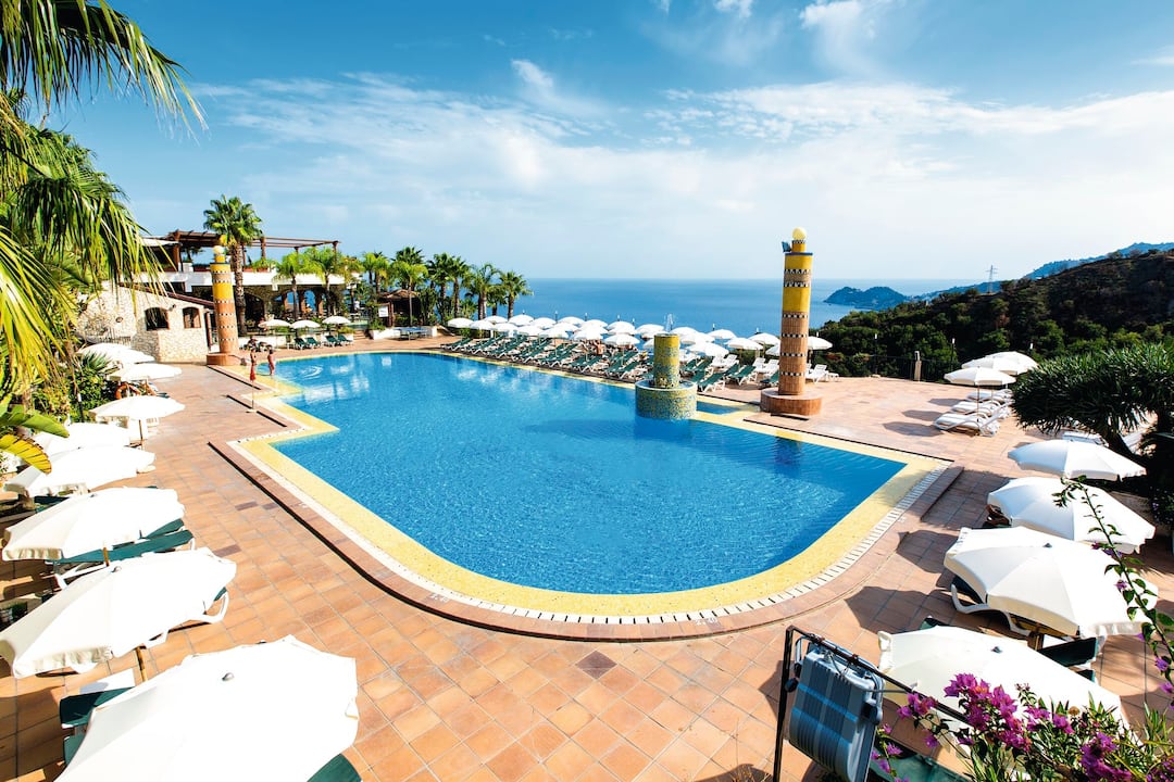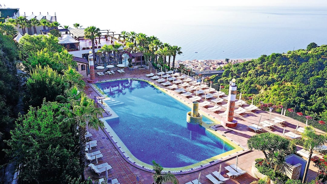 The Parchotel Olimpo is in Letojanni, a lively seaside resort in Sicily’s Messina province. Nestled between the white beaches of the Ionian Sea and hilly mountain ranges of Gallodoro, Letojanni is a fine example of Sicily’s natural beauty. For relaxing holidays to Italy that offer fun and tranquillity in equal measures, Letojanni is a great choice. The historic town of Taormina, with its charming square, elegant boutiques and art museums, is only 6km away. Add a bit of adventure to your visit and hop on the cable car to get a unique perspective of the town.