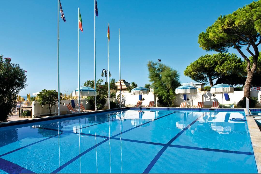The elegant Ambasciatori Palace puts you right by the beach and the centre of town. There’s a good-sized pool at the back of the hotel that comes with a terrace, a snack bar and a shallow pool for children on the side. Best of all, it looks out over a sandy beach and the Adriatic Sea.