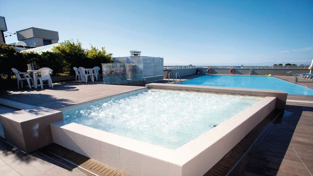 Housed inside a charming Venetian mansion, Hotel Principe Palace was one of the first hotels in Lido di Jesolo. Inside, you’ll find lots of vintage touches, from wood-panelling to red-leather sofas. But you’ll discover modern amenities, too, such as the recently-redesigned rooftop pool, which boasts a water fountain, a raised sundeck, and is surrounded by colour-changing lights. Head to the buffet restaurant on the fourth floor where you’ll find nightly candlelit dinners and fantastic views. Hotel Principe Palace is located on the Central Piazza Mazzini – head across the square and you’ll discover a beautiful private beach.