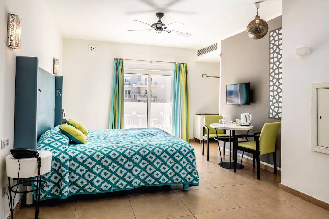 The db San Antonio Hotel and Spa Malta sits in the northern part of the main island, right in the heart of Qawra, in St. Paul’s Bay. Tastefully decorated, with a luxurious feel, the 4-star hotel boasts both indoor and outdoor pools, a spa offering a range of revitalising treatments, and a fitness studio. Entertainment is laid on for children, and a selection of exceptional restaurants makes your stay here even more memorable. If you choose to go all-inclusive, you’ll enjoy a lavish daily live-cooking buffet breakfast and a mouthwatering selection of food at the lunch buffet, as well as free drinks at the on-site restaurants, to accompany your evening meal.