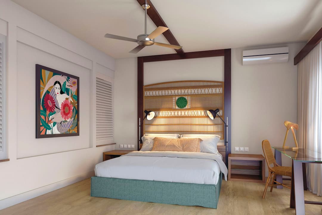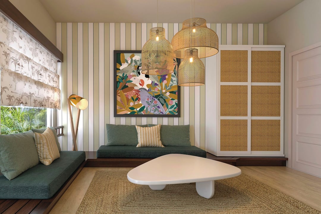 The hotel’s set out with colonial-style villas dappled around the grounds. There are plenty of relaxing touches around the grounds as well, including swing seats and hammocks. In the gardens, two pools sit side by side.