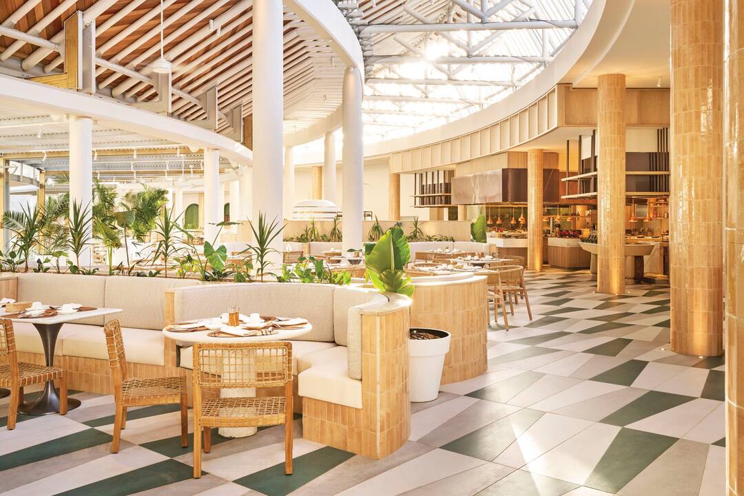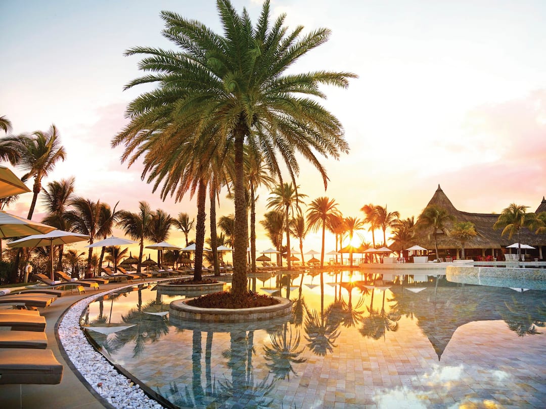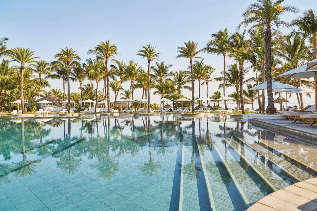 The centrepiece of the hotel is a massive pool. It’s lined with palms and measures an impressive 2,000 square meters. And for meals, you have the choice of everything from buffets to fine dining.