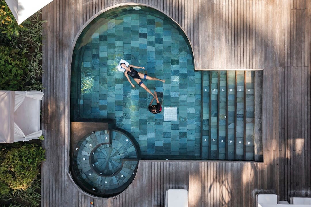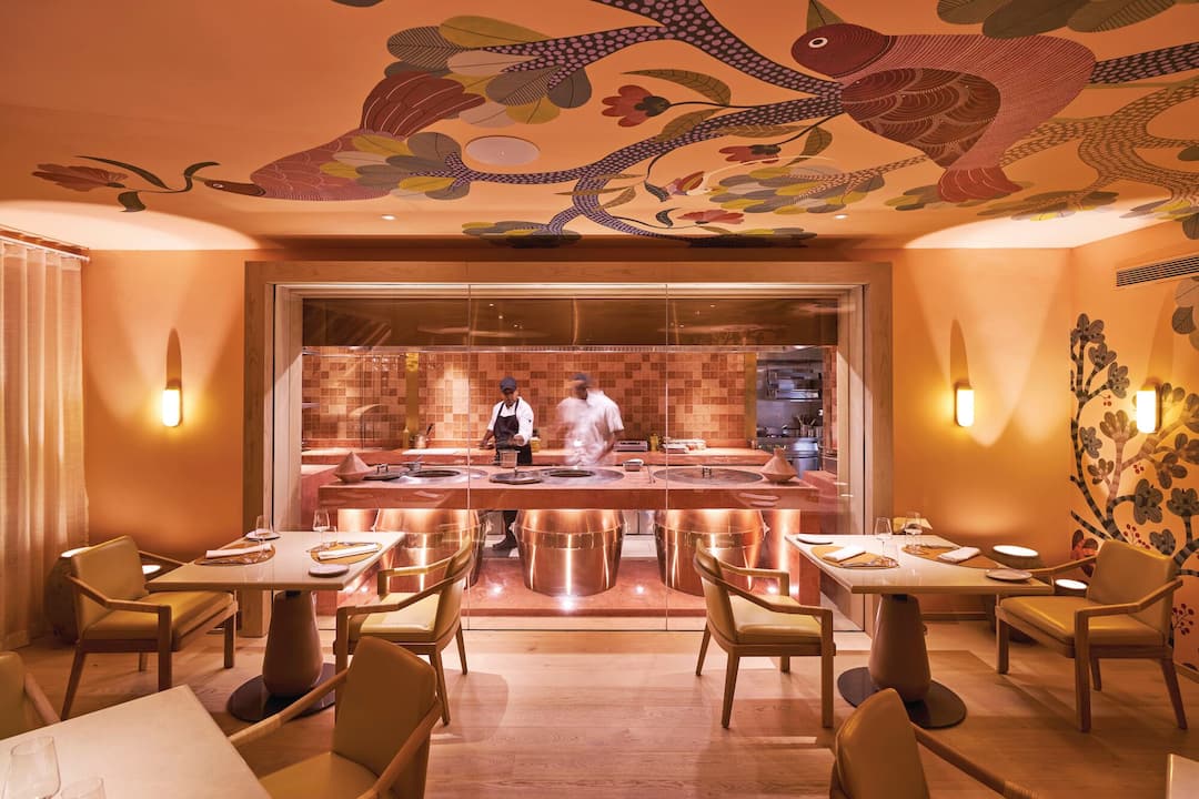 The hotel’s spacious grounds are filled with perfectly manicured tropical gardens that sit alongside a ribbon of white sand. The property itself has a beach-house feel, with thatched-roofed buildings dotted through the grounds. The rooms were also decorated by noted interior designer Kelly Hoppen.